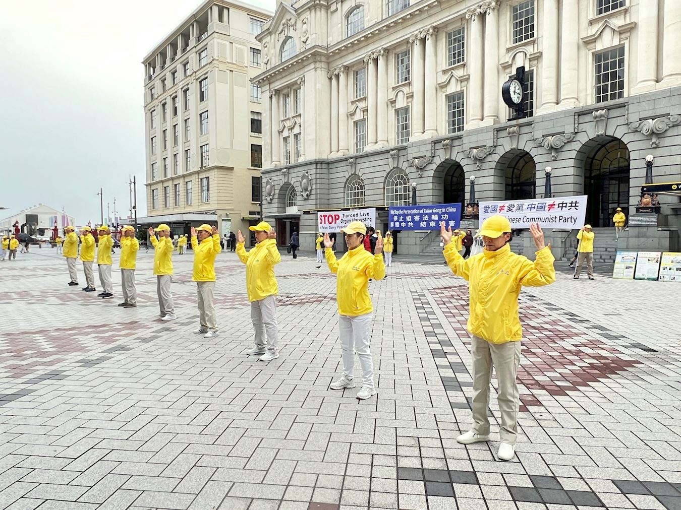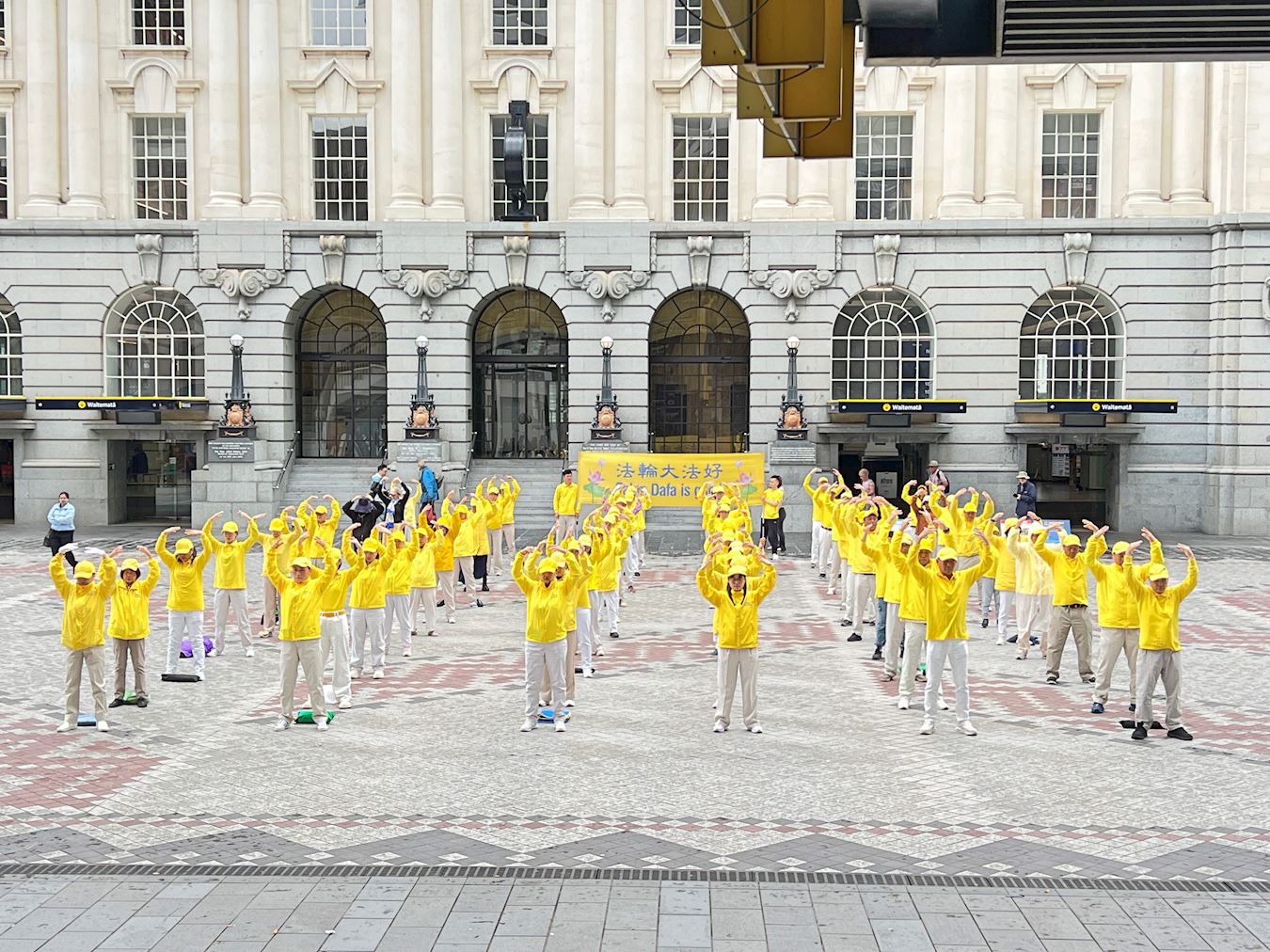 當天,活動現場法輪功學員祥和的煉功音樂與舒緩優美的煉功動作,吸引了大量路人駐足觀看。人們紛紛前來了解真相,簽名支持反對中共的迫害。