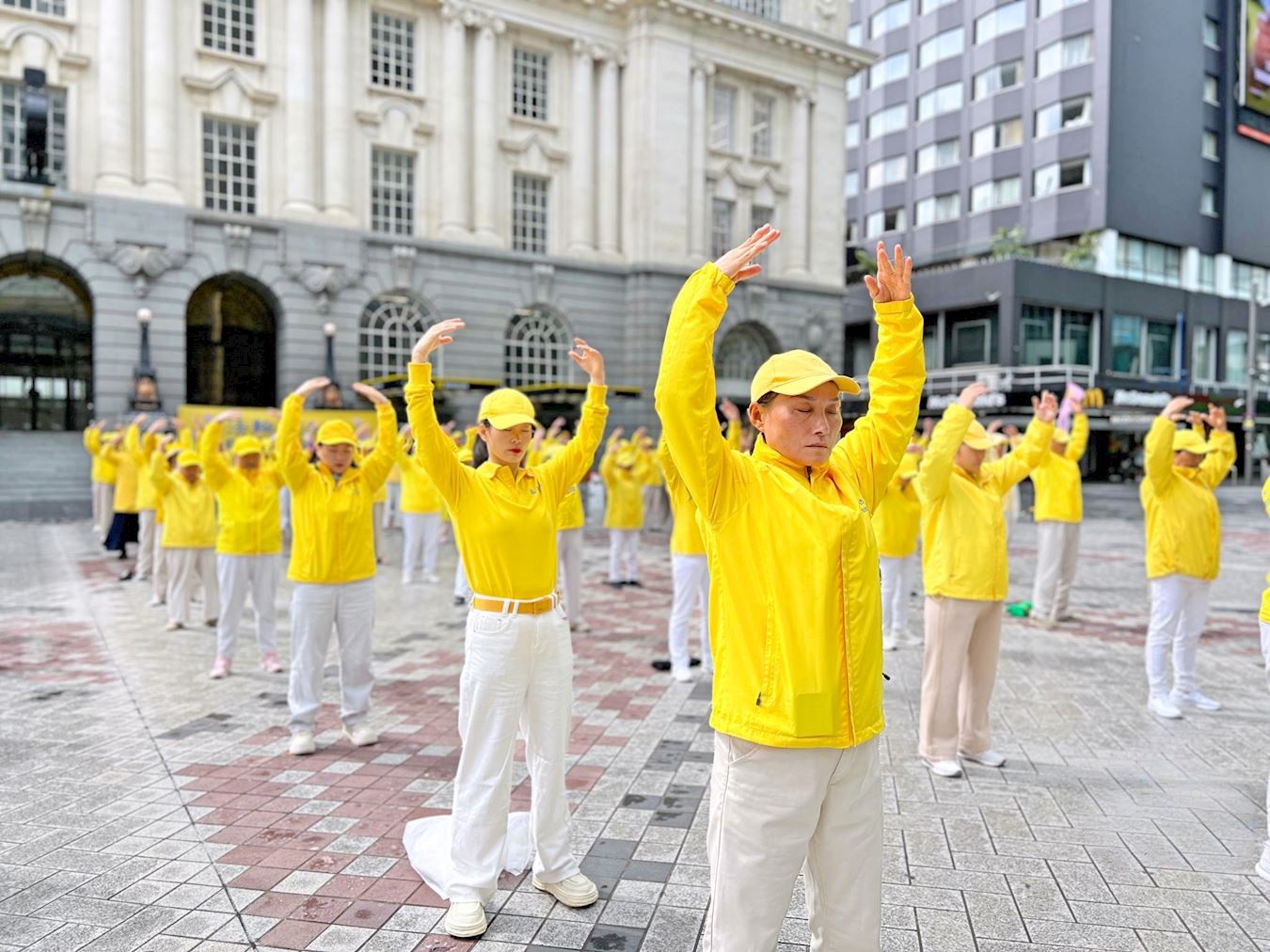 ![]() 圖1~2:二零二五年十一月十五日,法輪功學員在新西蘭奧克蘭商業灣(Commercial Bay)廣場煉功。 |