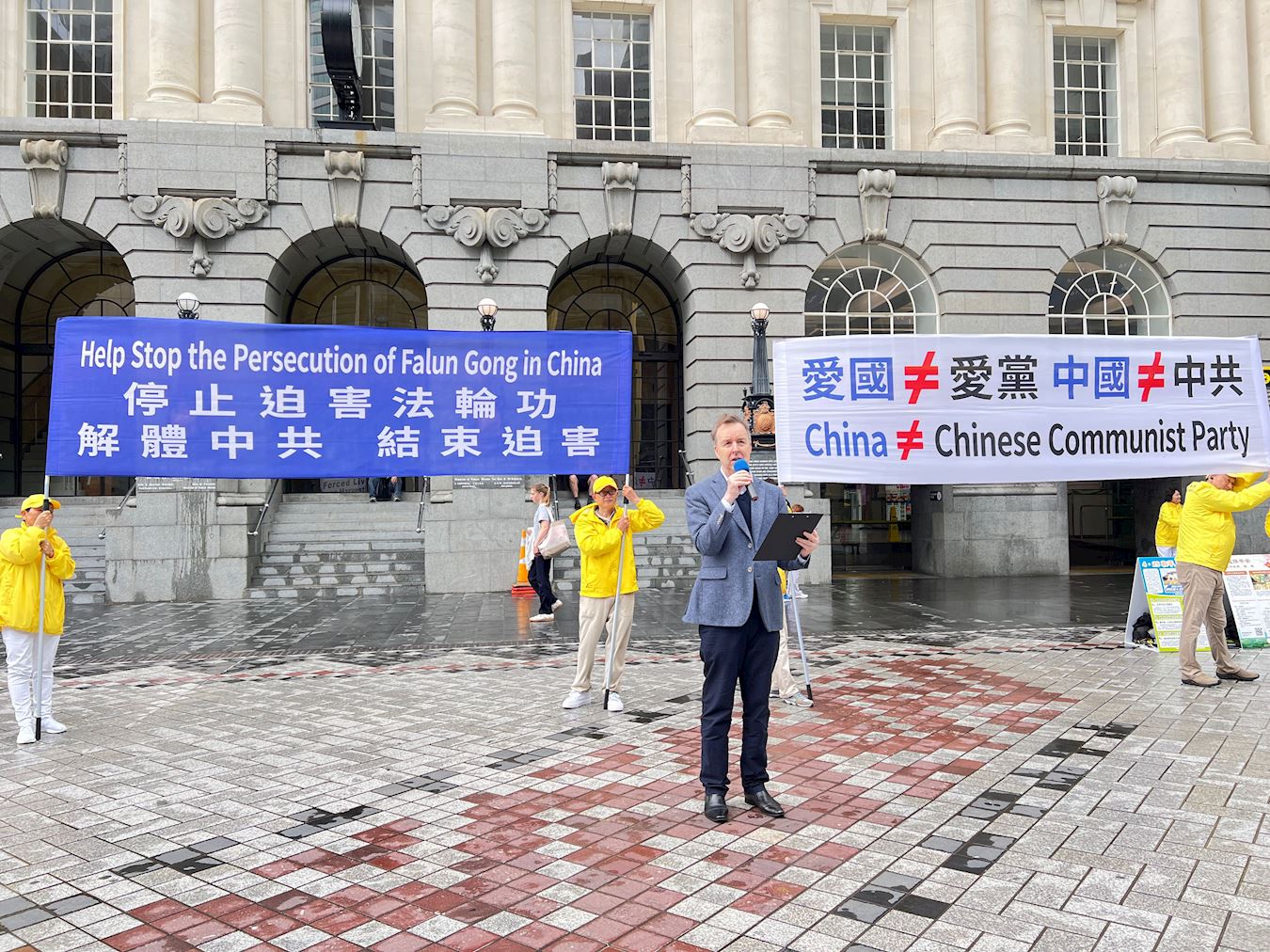 演講最後,威爾森再次向法輪功學員表達敬意,稱讚他們堅持揭露真相、為中國境內遭受迫害的人發聲。他說:「再次向法輪功表示祝賀,是你們讓這些議題持續被關注,讓世界看到那些在中國被殘酷對待、被剝奪人權的人。」