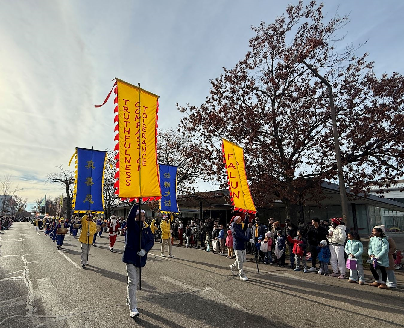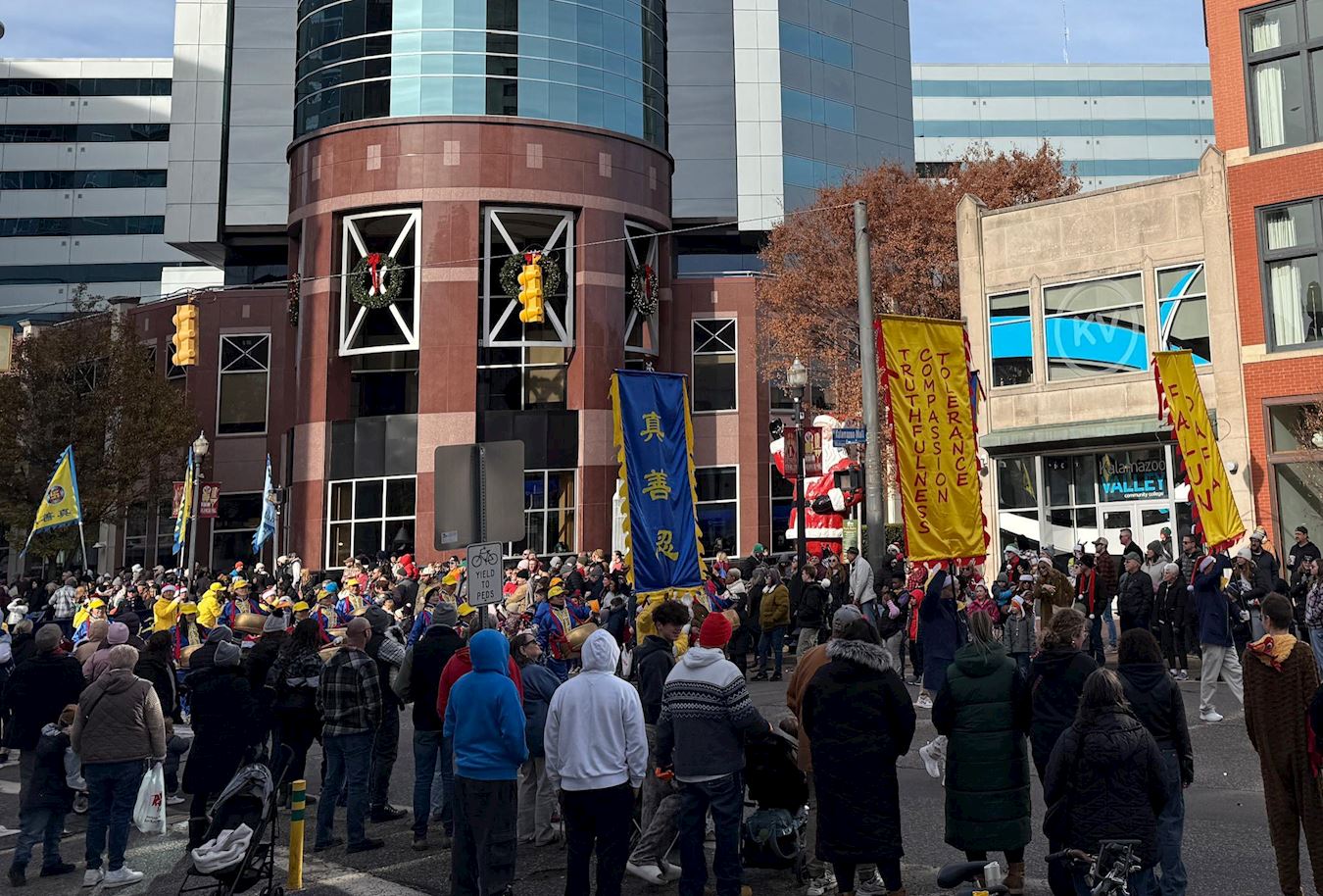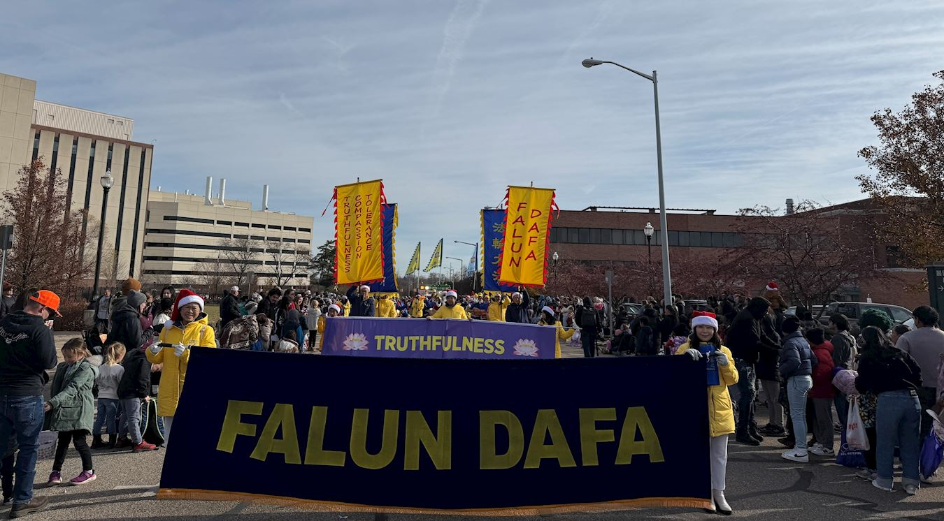 【明慧網二零二五年十一月二十四日】伴隨著感恩節和聖誕節的臨近,二零二五年十一月二十二日,密西根州卡拉馬祖市(Kalamazoo)中心的第六十三屆楓樹山假日遊行( Maple Hill Holiday Parade)熱鬧登場,這是當地每年一度的大型節慶遊行活動。