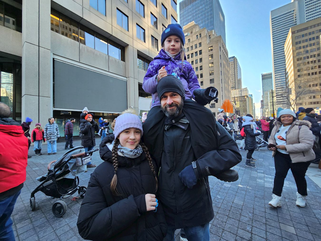 林業工人克里斯汀(Christian)帶著孩子們來看遊行。天國樂團的鼓聲讓他感到振奮。
