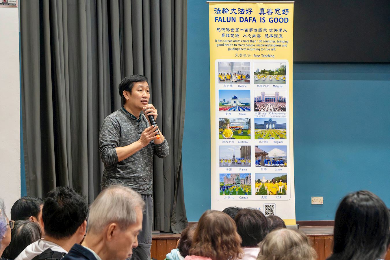 來自北部檳城的家瑋,分享了自己十多年如一日,風雨無阻堅持到煉功點煉功的體悟。他回憶,煉功點成立初期,由於社會上仍存在不少對法輪功的誤解,作為剛開始修煉不久的新學員,他每天出門煉功時「心裏都是戰戰兢兢的」。那時的他常常站在人群後方,不敢掛橫幅。