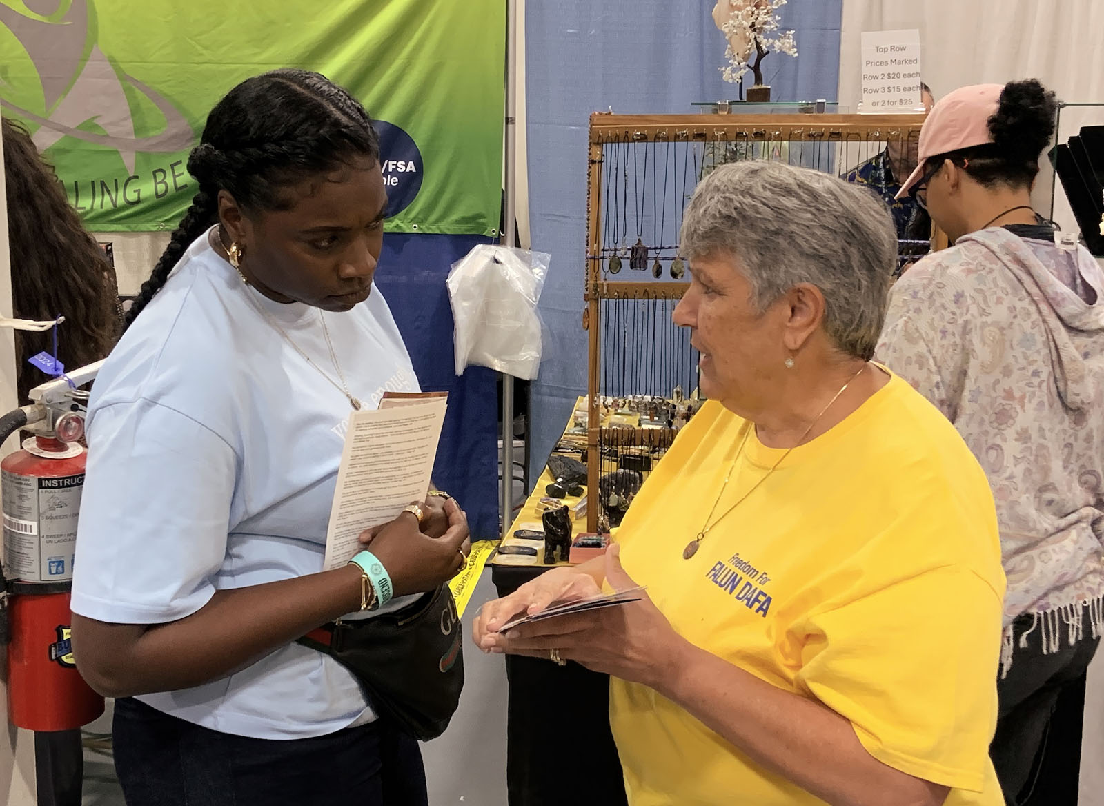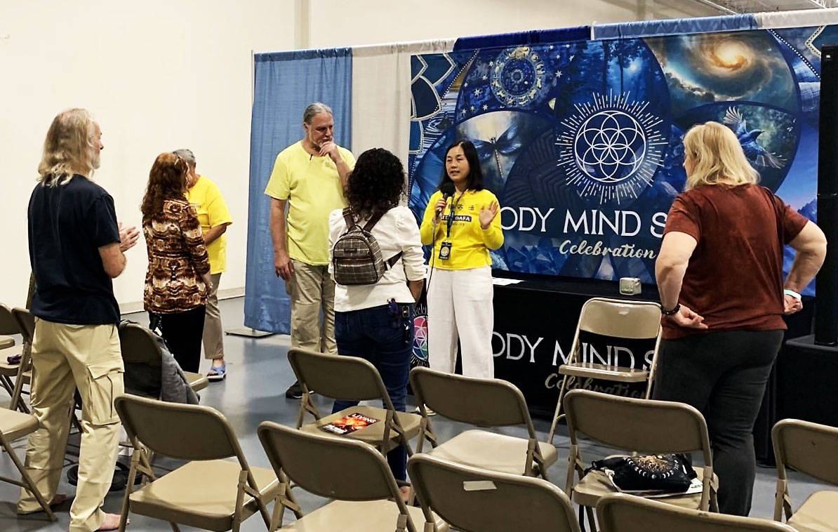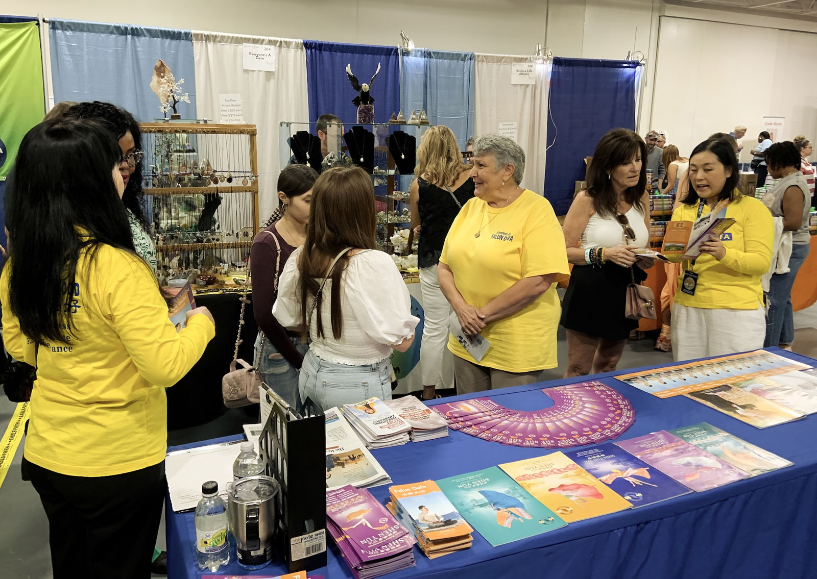 【明慧網二零二五年十一月二十七日】二零二五年十一月十五日和十六日,美國佛羅里達州(佛州)中部的部份法輪大法學員參加了在坦帕展覽中心(Florida Fairground)舉辦的身心靈健康博覽會(Mind Body Spirit Expo)。學員們在博覽會上向人們介紹了法輪大法的美好,很多人駐足了解真相。學員們還在十五日週六下午舉辦了一場為時一小時的專題講座,使得有緣人能深入了解更多真相。