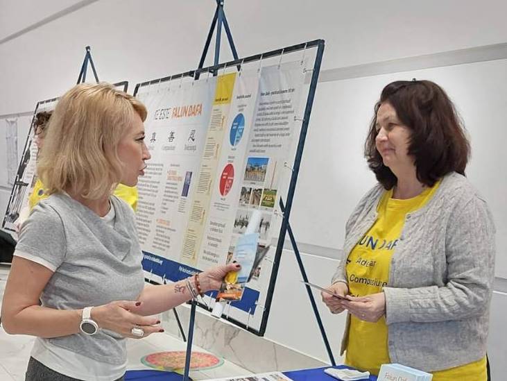 瑪利亞和莉安娜(Liana)非常喜歡功法,領取了資料,並記下了蒂米什瓦拉學員的聯繫方式。莉安娜還買了《法輪功》一書。她們表示希望在所在協會舉辦功法講座,因為那裏經常有聚會。