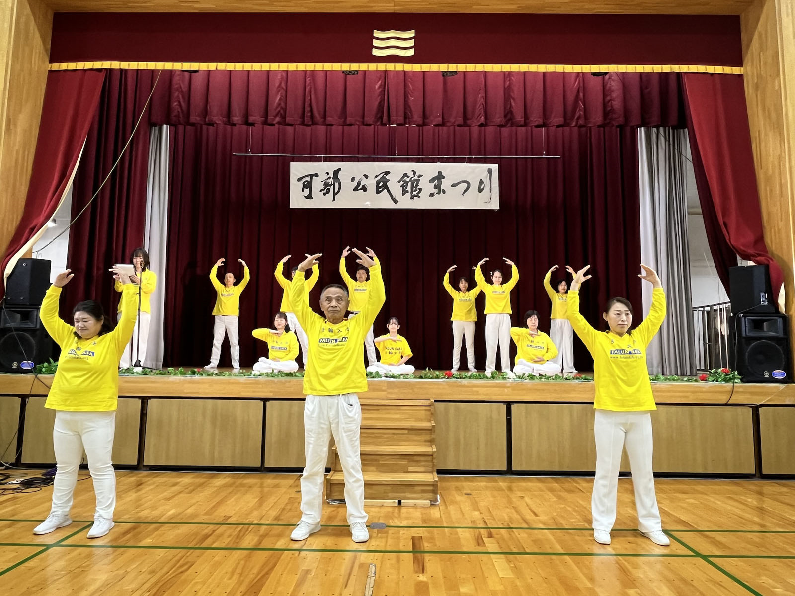 二零二五年十一月二日,日本廣島法輪功學員還參加了在廣島市可部公民館舉辦的第五十二屆可部公民館慶典。活動中,學員們通過舞台表演介紹法輪功的美好,並演示了五套功法,場下幾乎所有觀眾都跟著學煉,場面祥和。活動後不少人詢問當地法輪功教功教室的信息,更有人表示願意為法輪功活動提供無償幫助。