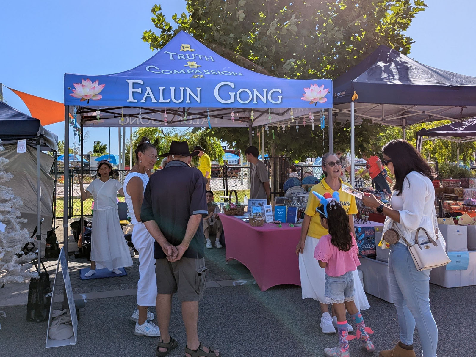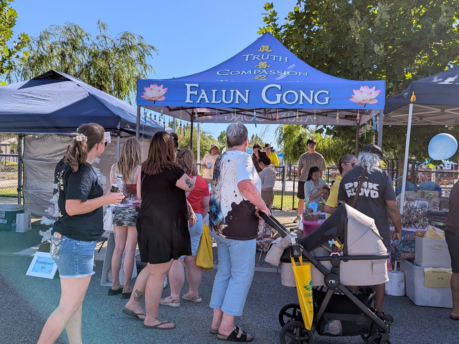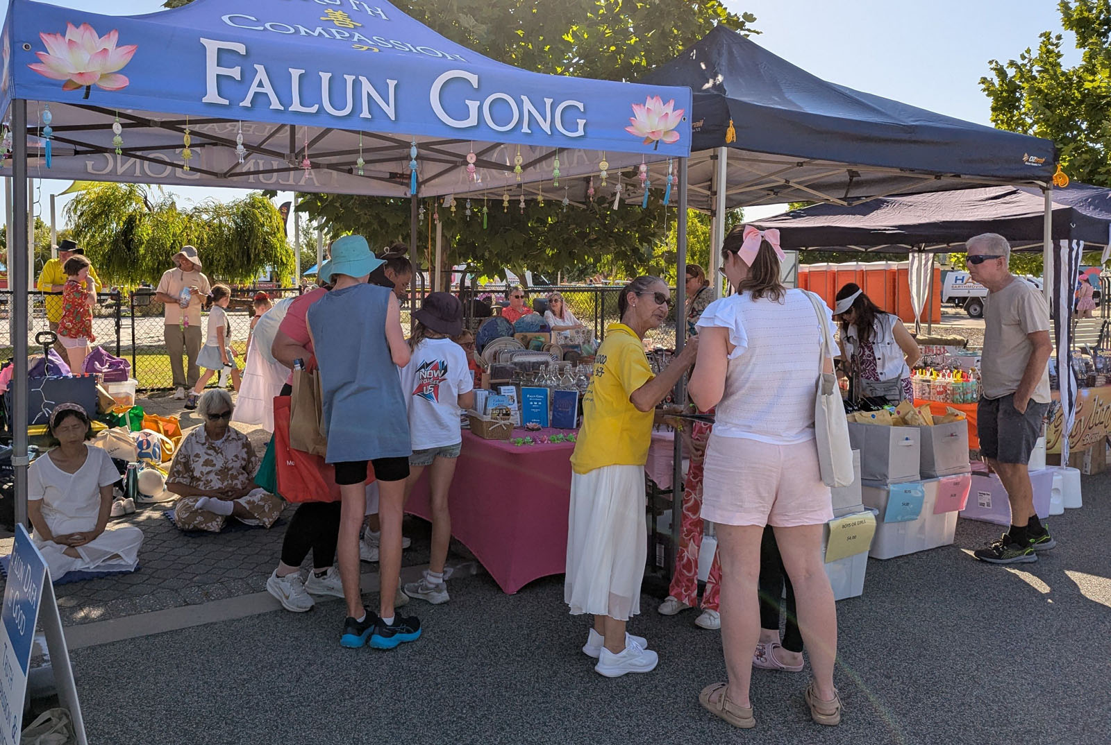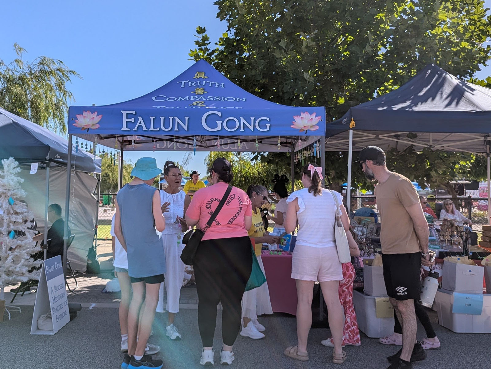 西澳法輪功學員在展位上向人們介紹法輪大法,並演示了五套功法。