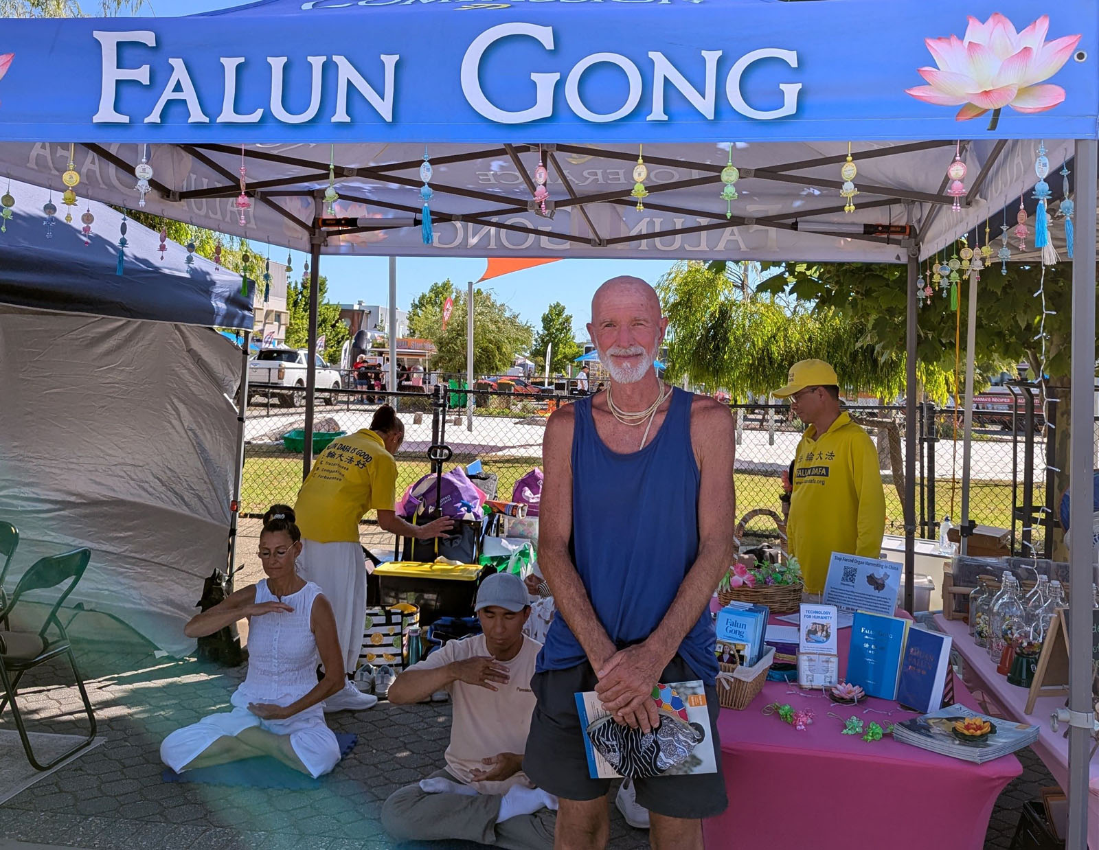 科裏﹒尤斯塔斯(Cory Eustace)對法輪功學員說,大法展位「充滿美好能量,讓人感覺很開心」。尤斯塔斯表示對法輪大法修煉很感興趣,也想學煉。他說,法輪大法能帶來「內心的平靜」,還能「開啟潛能」,「這絕對是我感興趣想去了解的東西」 。