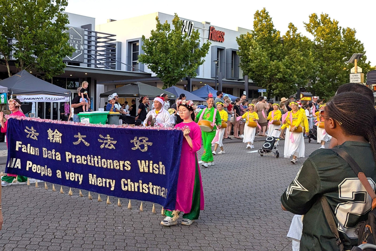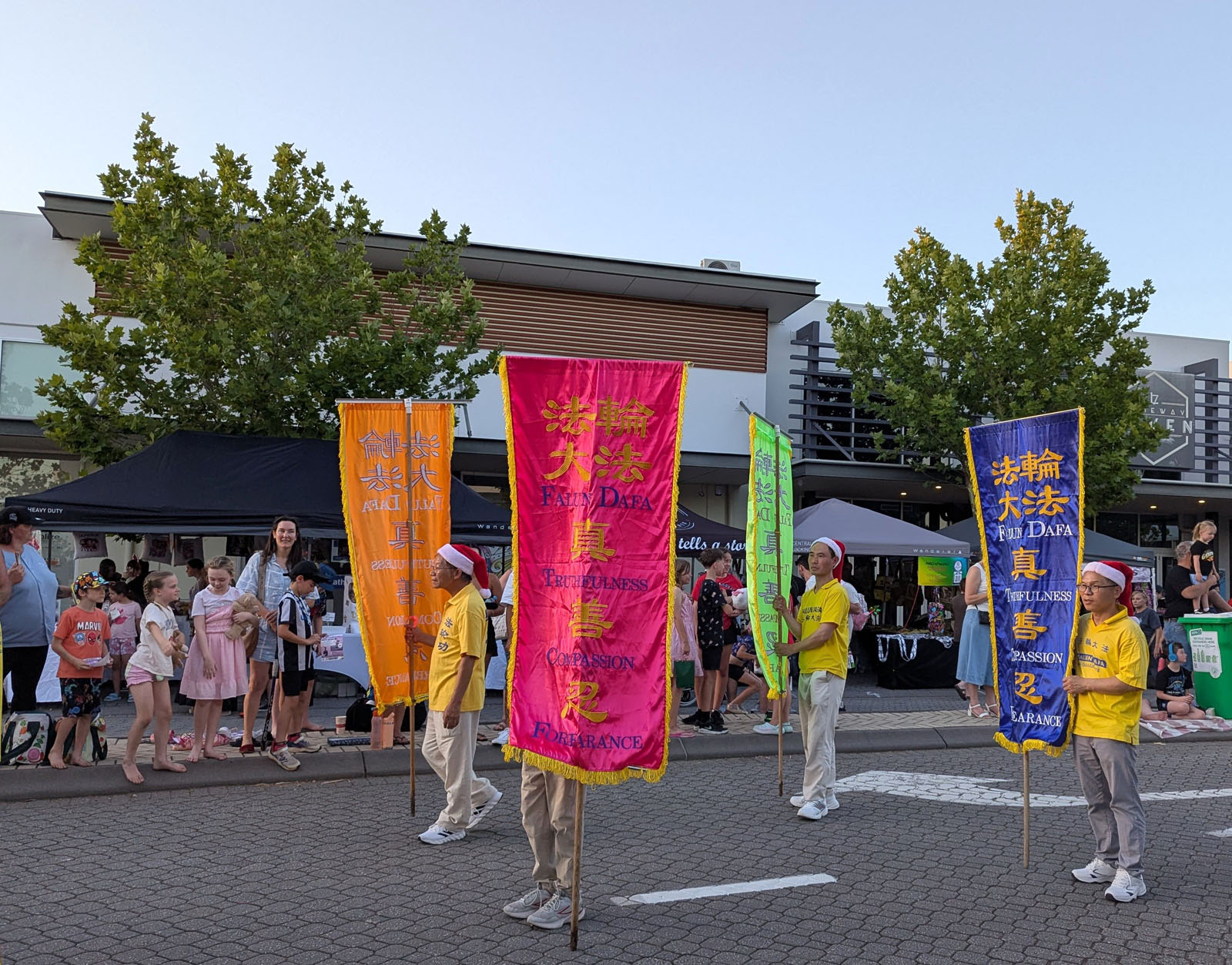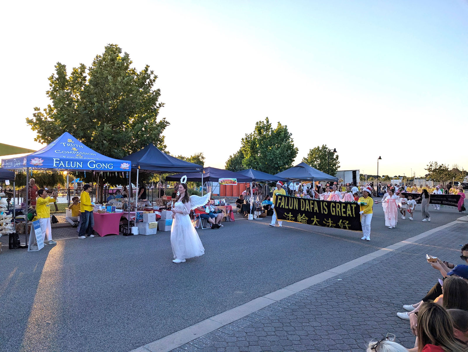 十二月十三日,西澳法輪功學員在珀斯市艾倫布魯克舉行的聖誕慶祝活動中設立了展位,並參加了傍晚的聖誕遊行,與當地居民共慶聖誕節。