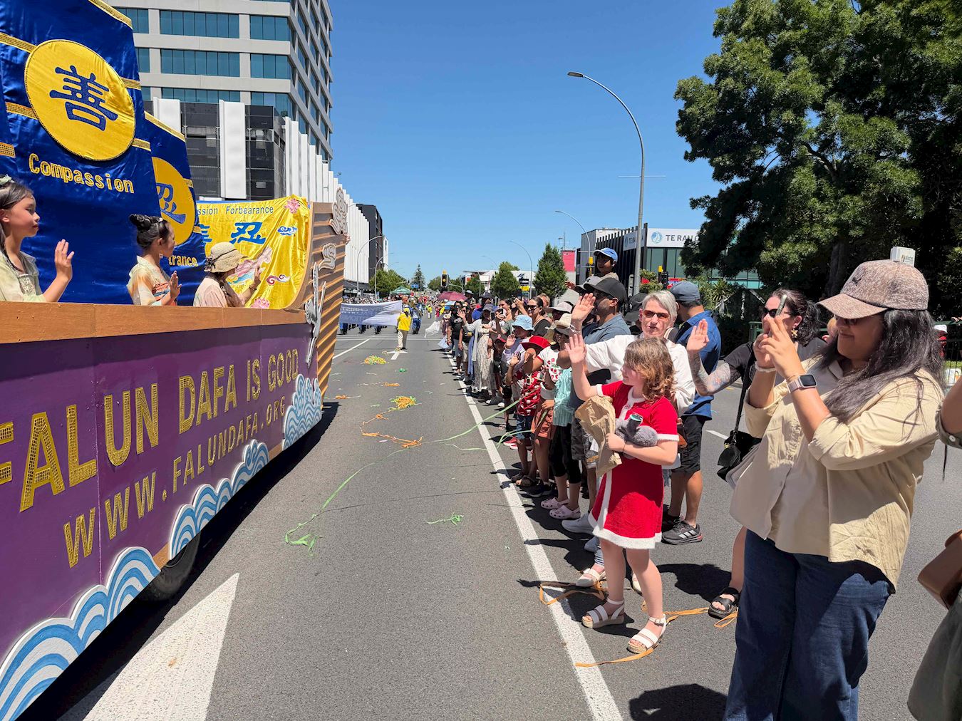 沿途觀眾不斷揮手、拍照和鼓掌,許多民眾表示,法輪功團體的節目不僅絢麗醒目,更讓人感受到一種平和、純正的力量。