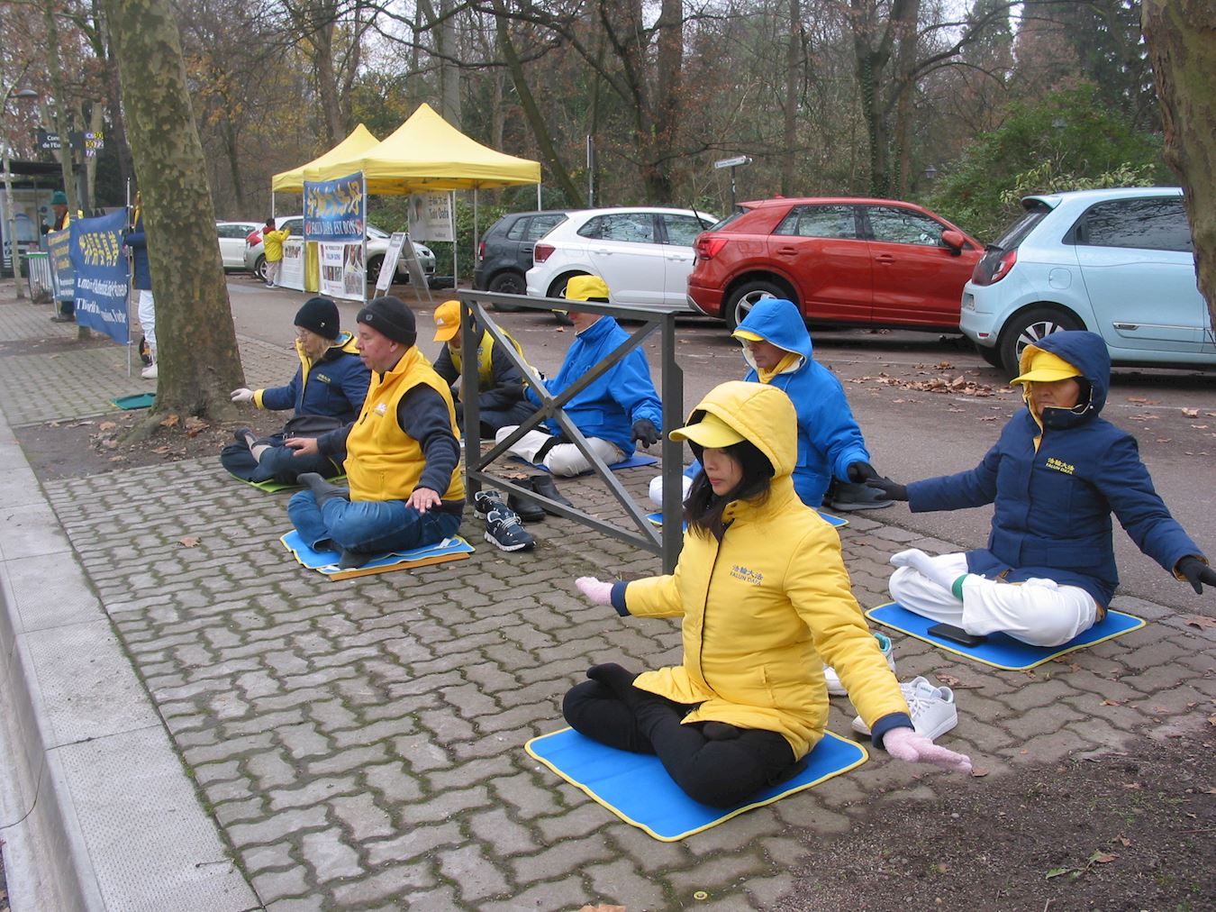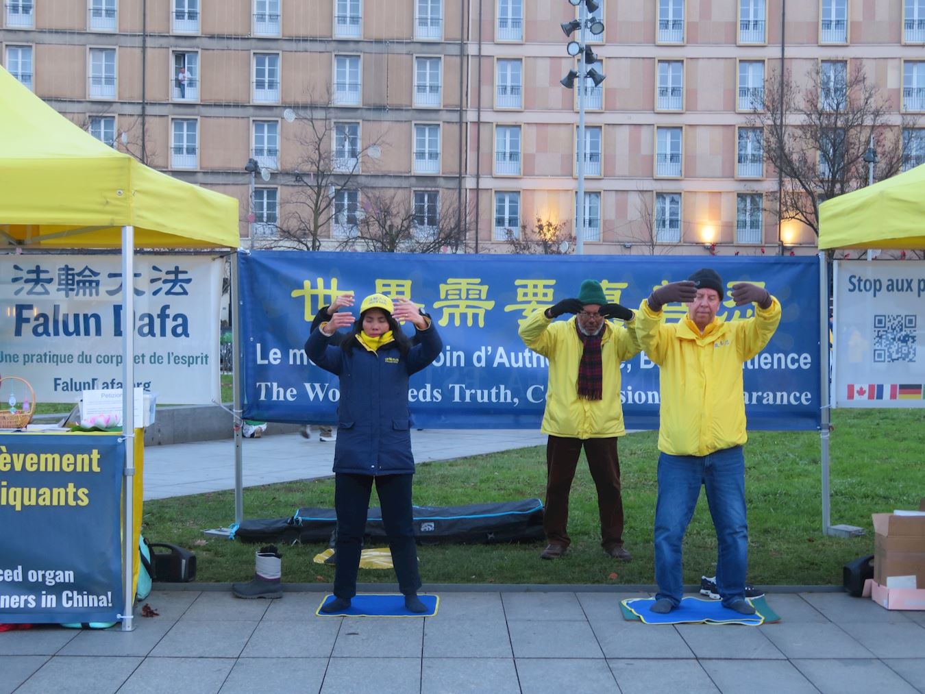 ![]() 圖1~3:十二月四日,部份法輪功學員在歐洲理事會大廈前進行了打坐煉功和徵簽活動,呼籲制止中共迫害。 |