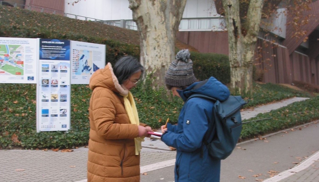 十二月四日,來自法國、德國和瑞士的部份法輪功學員,在歐洲理事會大廈前和斯特拉斯堡火車站廣場上,進行了講真相的活動。他們向各界人士發放法輪功真相傳單,揭露中共對法輪功學員的迫害。同時徵集簽名,呼籲制止中共活摘器官罪行。