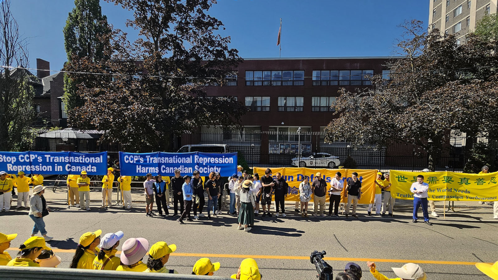 ![]() 圖1~3:二零二五年九月二十八日,多倫多部份法輪功學員及支持者在多倫多中領館前集會,呼籲制止中共跨國鎮壓法輪功,呼籲中共停止迫害法輪功。 |