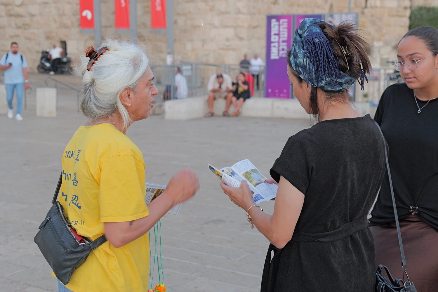 【明慧網二零二五年九月九日】二零二五年八月二十一日(星期四),以色列法輪大法學員在耶路撒冷(Jerusalem)、特拉維夫-雅法(Tel Aviv-Jaffa,)和貝爾謝巴市(Beersheba)舉辦了信息日活動,向民眾介紹大法,並講述法輪功學員在中國大陸因堅持信仰而遭受中共迫害的事實真相。