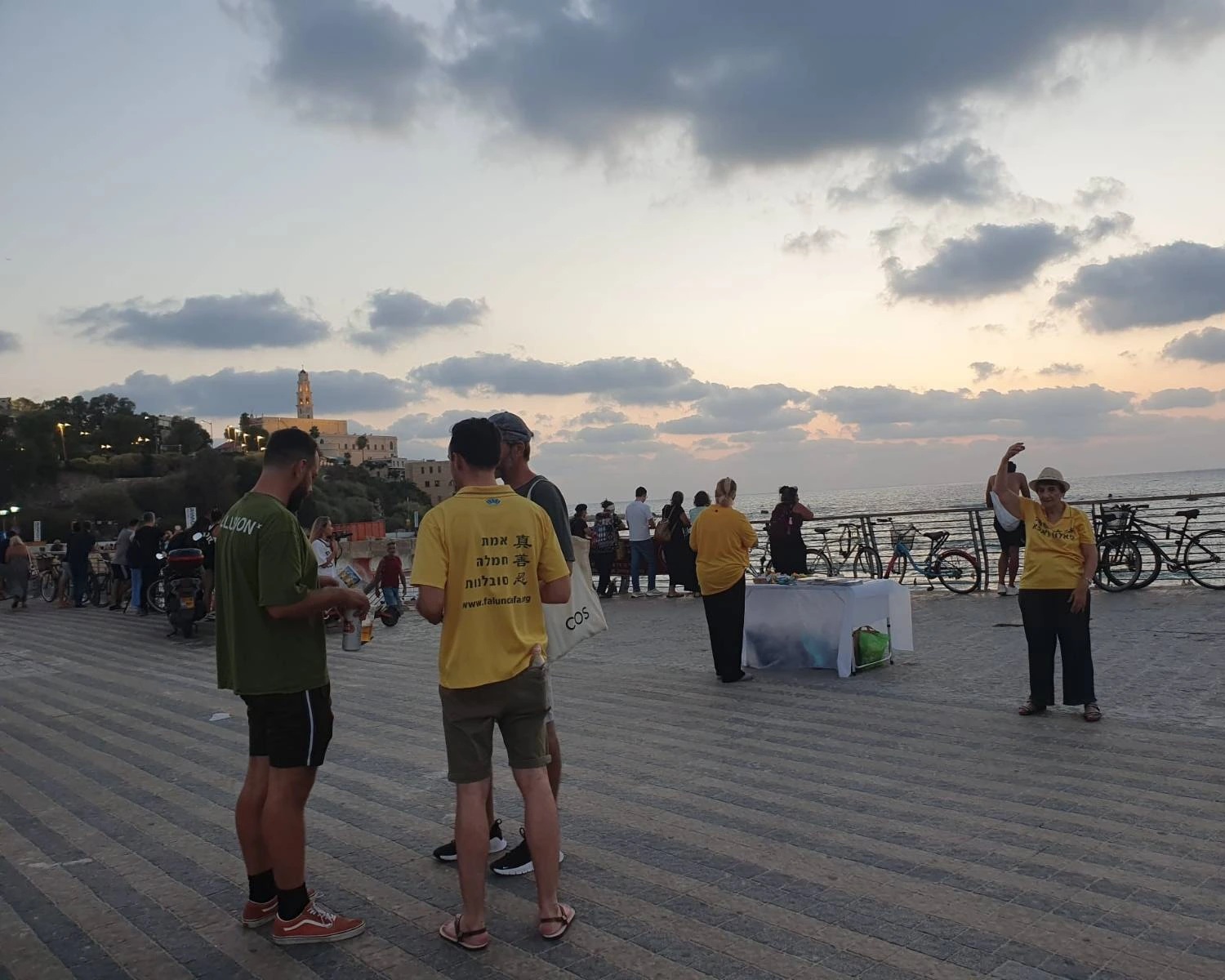學員們在雅法的兩個地點同時舉辦活動,一個是在特拉維夫海灘的濱海大道,另一個是在雅法的濱海大道。