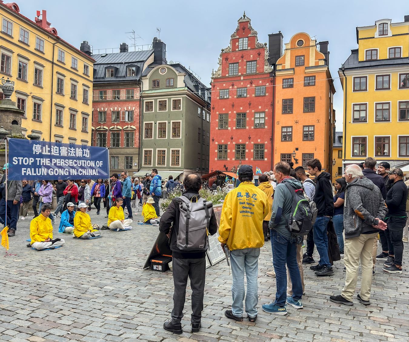 九月六日週六下午,法輪功學員在斯德哥爾摩音樂廳(Konserthuset)旁舉辦了講真相反迫害徵簽活動。