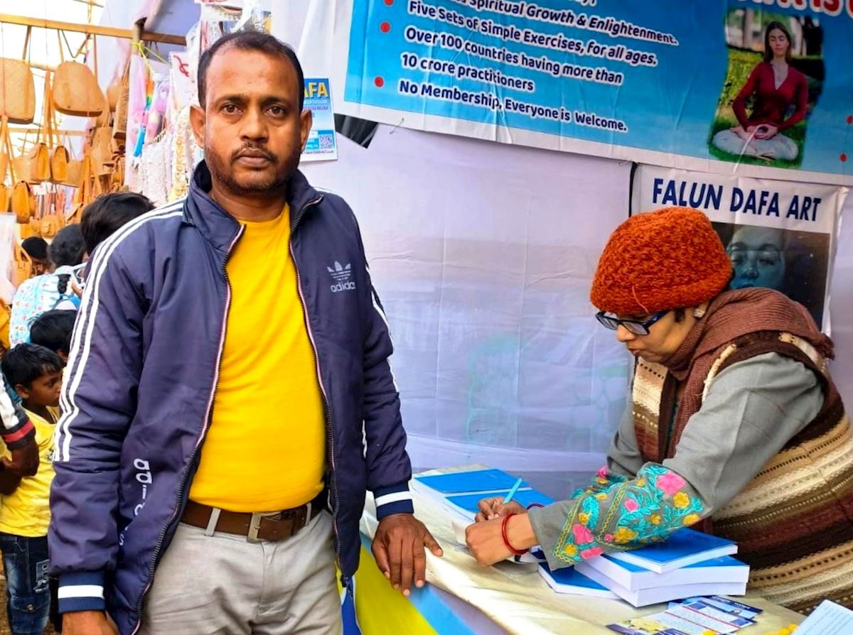 一位住在聖蒂尼克坦的親戚建議辛哈,集市期間會有成千上萬的人,這是介紹法輪大法的好機會。辛哈立刻預訂並支付了展位費用。展會的第一天,當辛哈看到人們主動來到展位了解法輪大法時,便確信自己做對了。