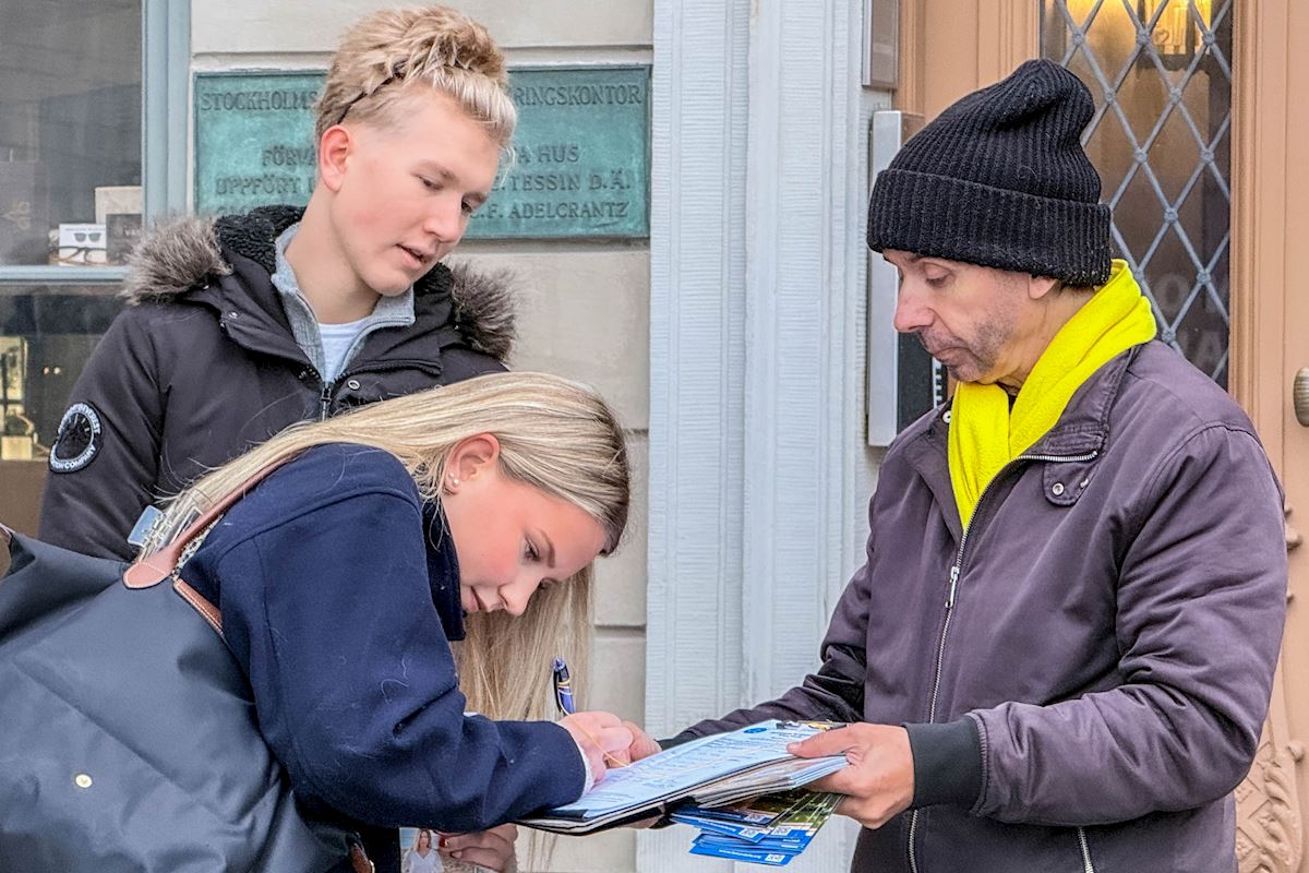 據活動組織者、法輪功學員約翰(Johan)介紹,自一九九九年中共開始迫害法輪功至今,迫害仍在繼續,目前即將進入第二十七個年頭了。對他們而言,長期堅持向瑞典各界傳播真相,不僅是和平反迫害的呼聲、對正義和良知的呼喚,也是在傳遞著這群信仰真、善、忍做好人的人,和平理性反迫害的勇氣與堅韌。他呼籲國際社會及各界正義人士繼續關注法輪功,希望更多人都來了解了解法輪功真相,幫助共同制止迫害。
