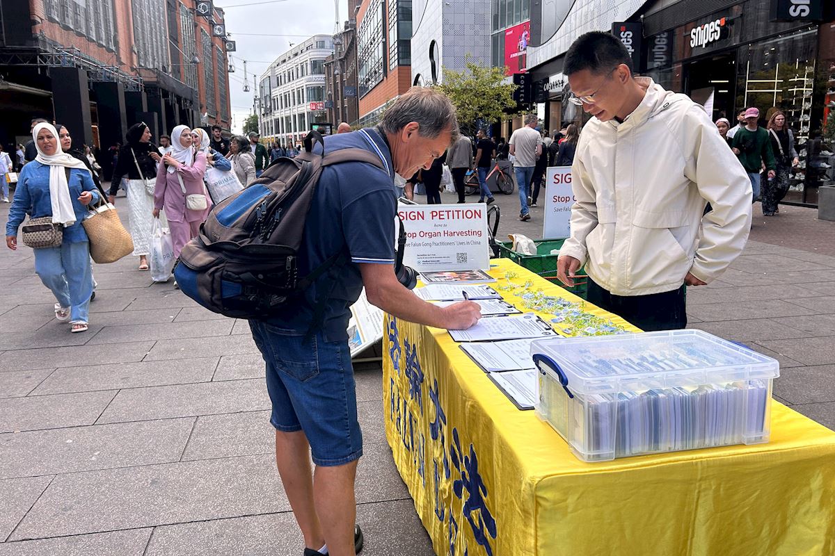 青年桑德羅來自意大利,在海牙工作。在真相展板前,他跟學員們交談了很久。談及中共活摘器官的罪惡,他表示,「捐獻器官應該是一種選擇。我支持捐獻器官,想在死後幫助別人。但需要簽署自願捐助文件,而不是被某些特定群體或個人為了牟利而殺害,那太糟糕了!」