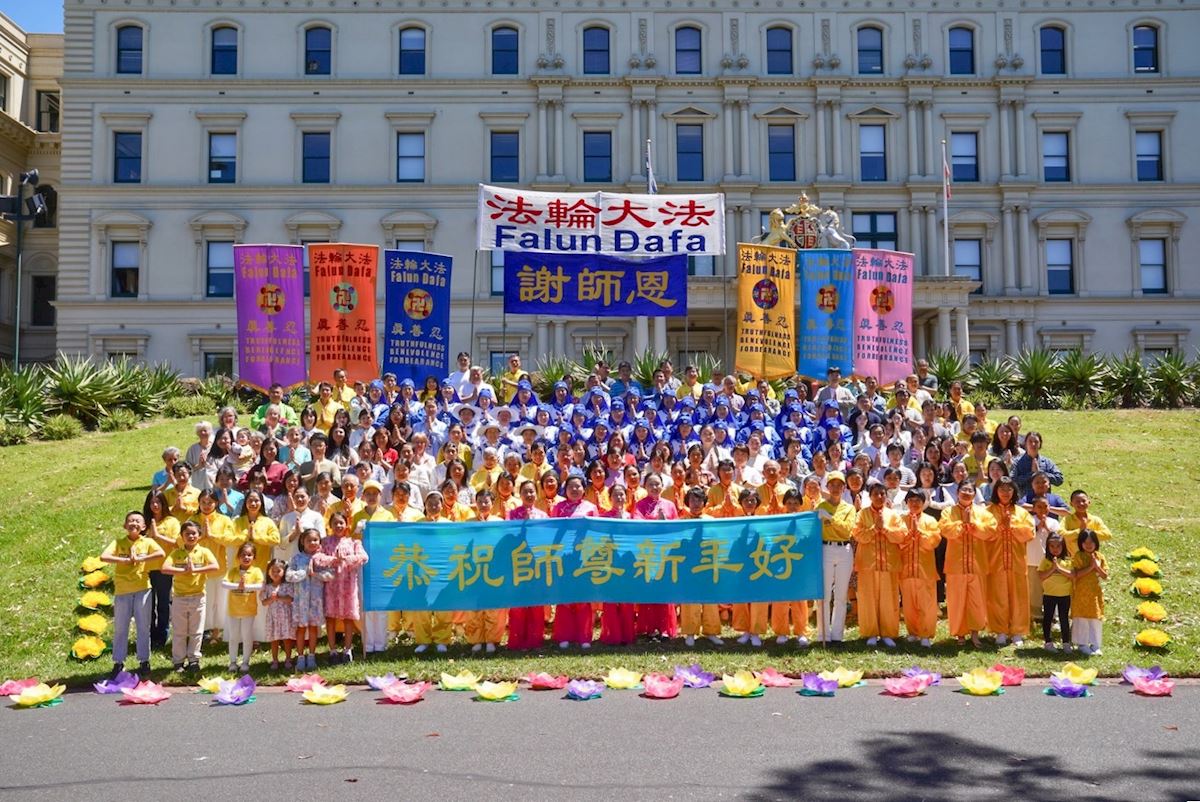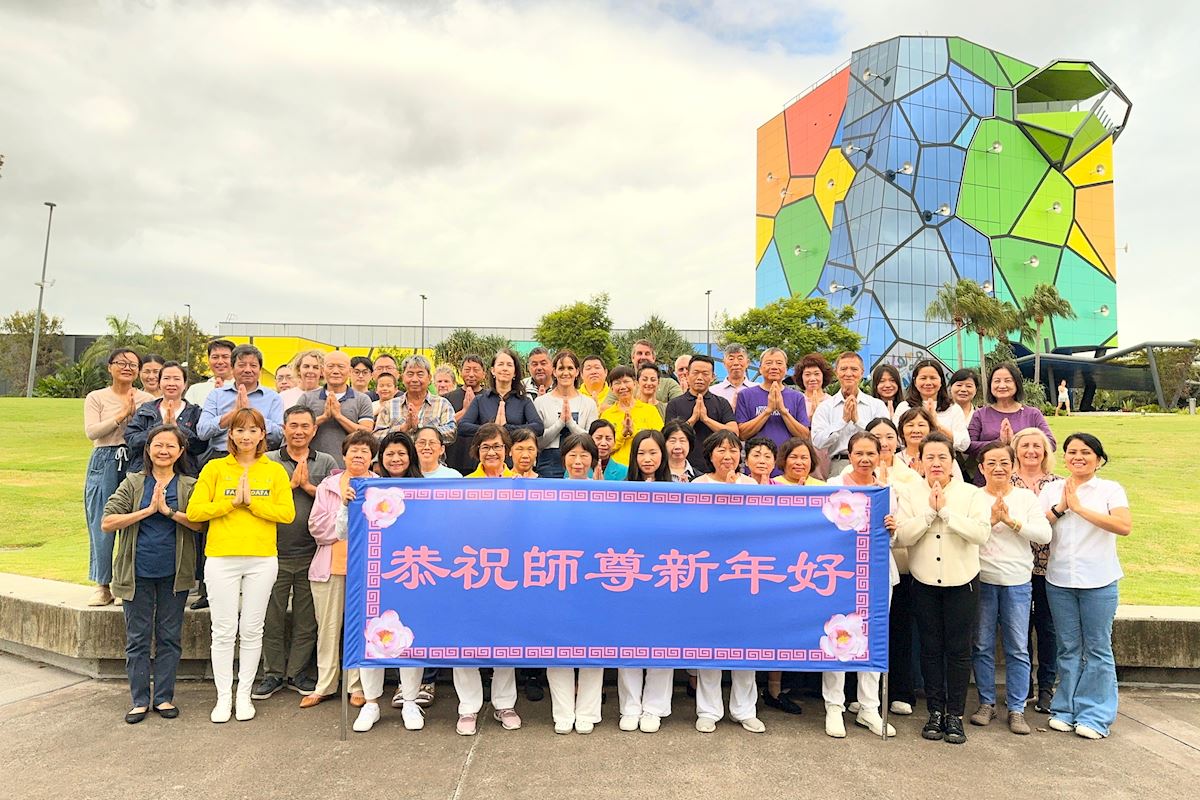 ![]() 圖1:澳洲墨爾本法輪功學員向師尊致以中國新年問候! |