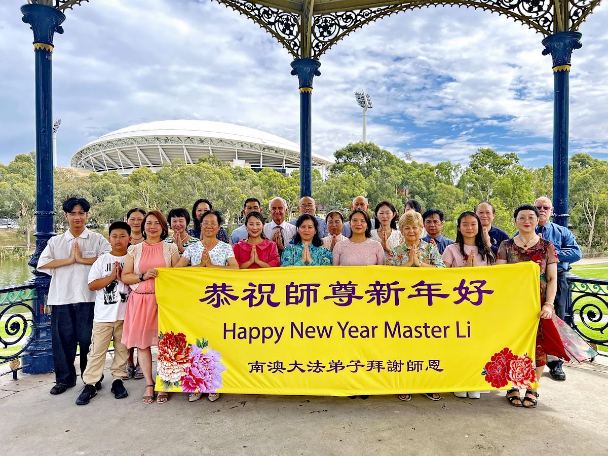 ![]() 圖4:南澳阿德萊德法輪功學員向師尊致以中國新年問候! |