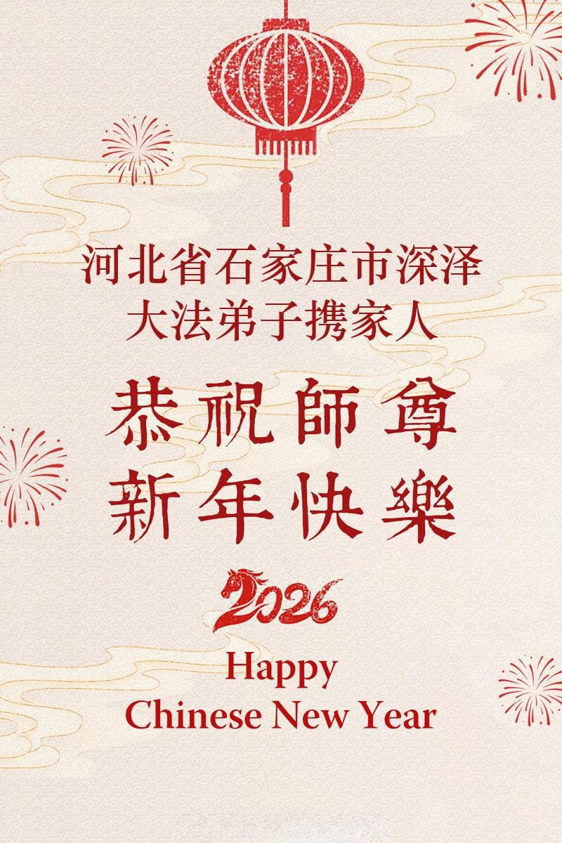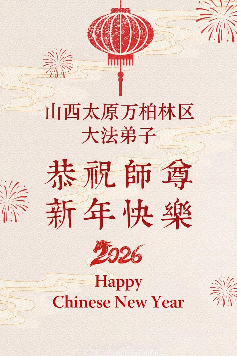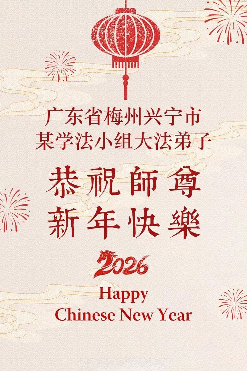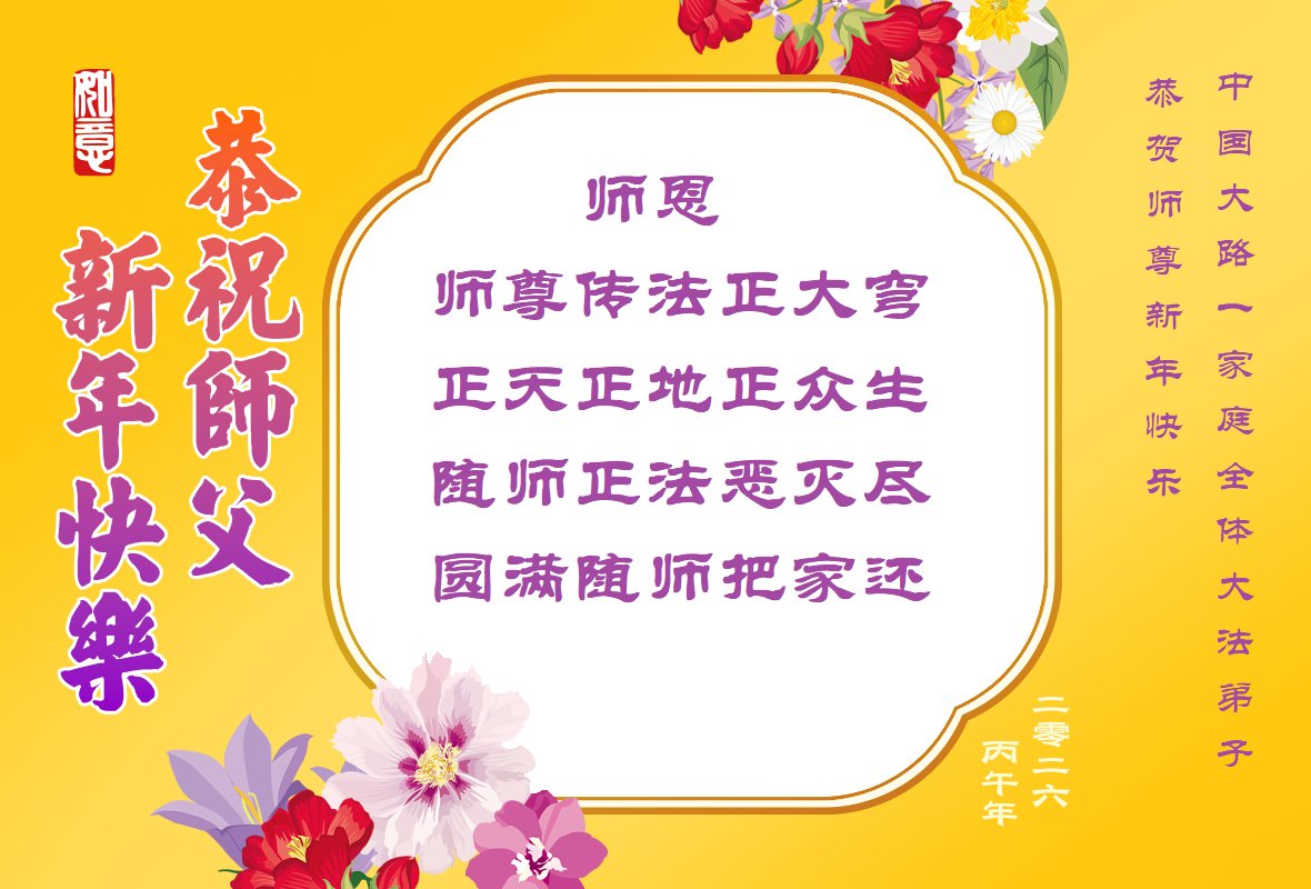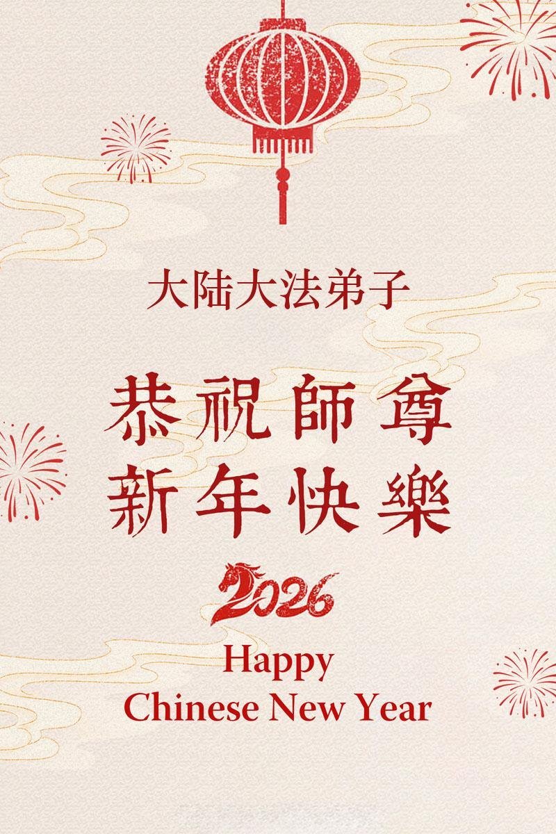 【明慧網二零二六年二月十九日】(明慧網通訊員綜合報導)二零二六丙午年中國傳統新年到來,中國大陸各省市、各地區學法小組的大法弟子們向大洋彼岸的師尊拜年!