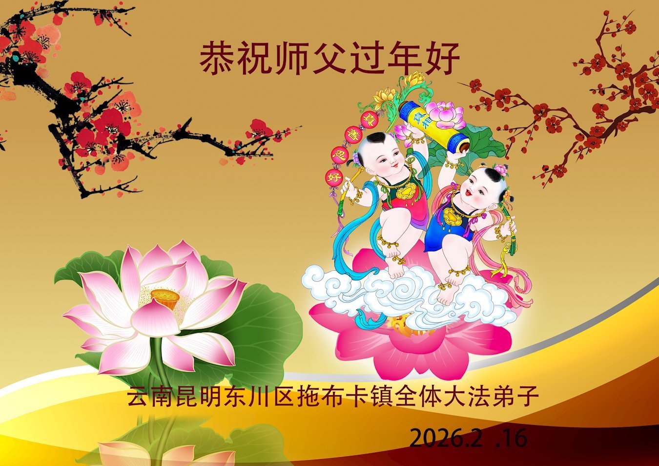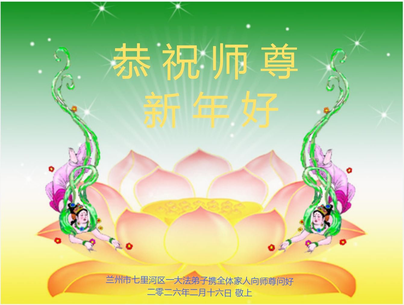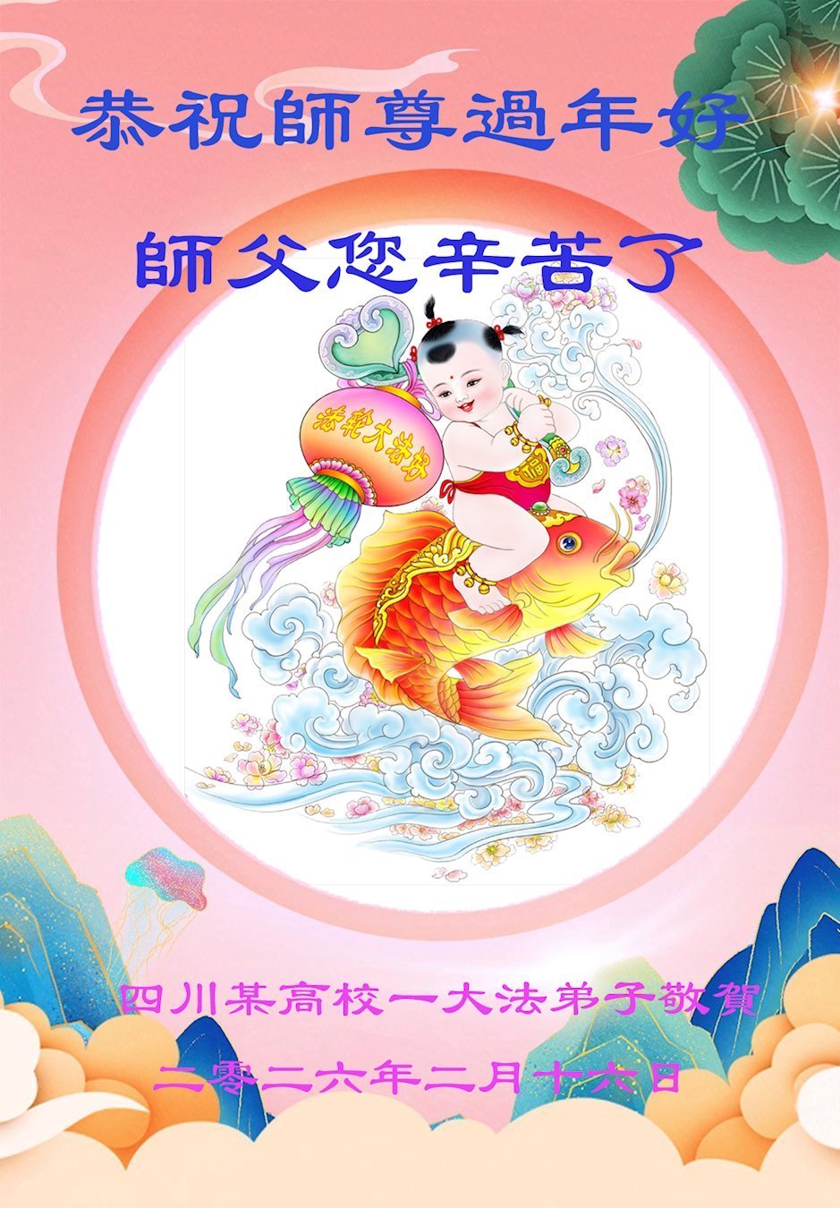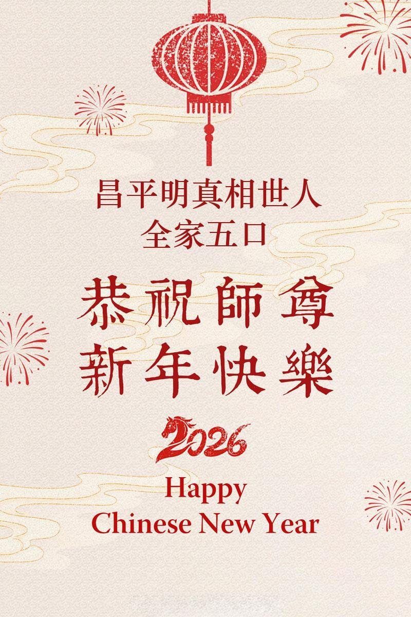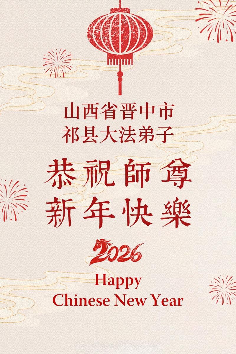【明慧網二零二六年二月十九日】(明慧網通訊員綜合報導)二零二六丙午年中國傳統新年到來,中國大陸各省市、各地區學法小組的大法弟子們向大洋彼岸的師尊拜年!