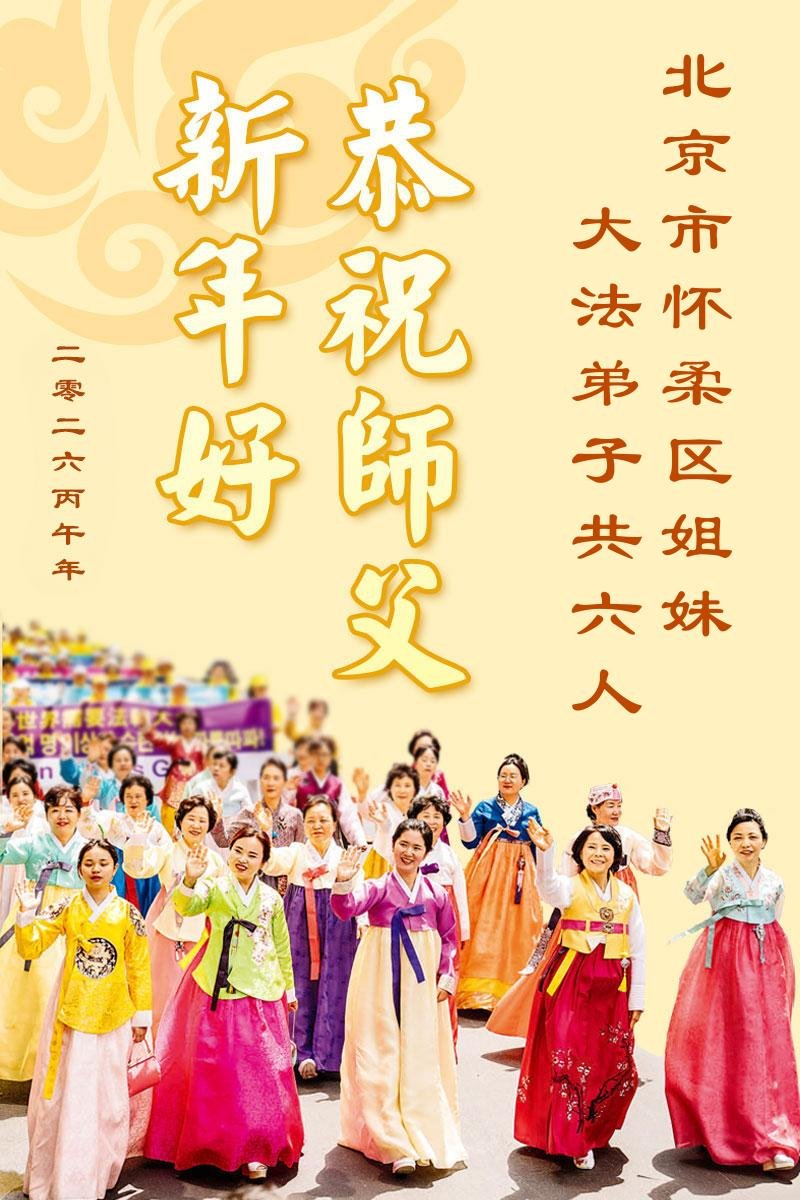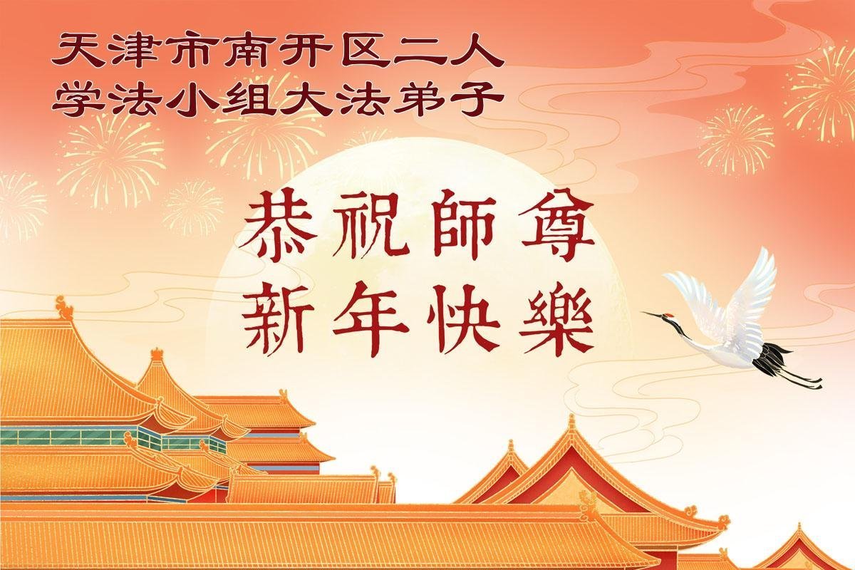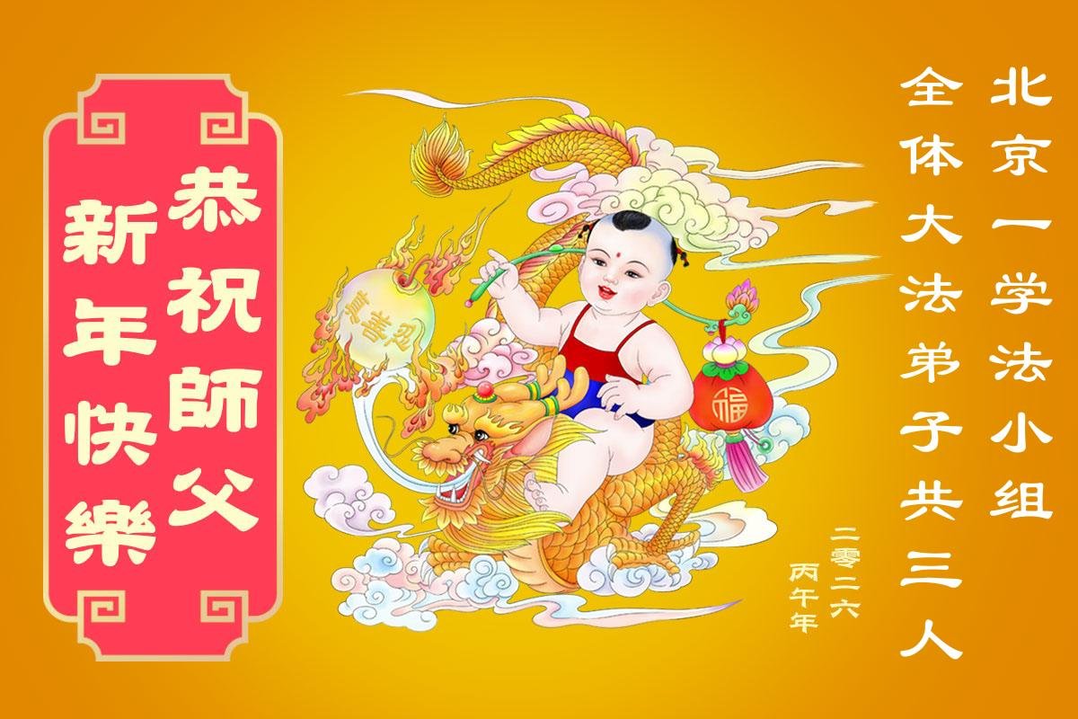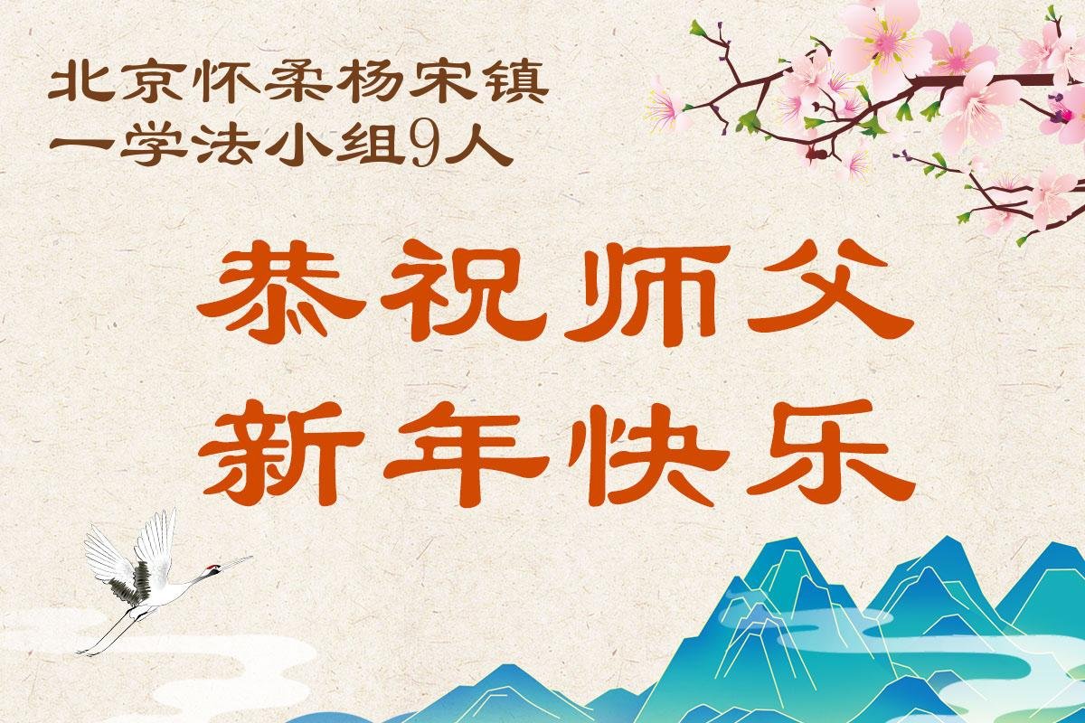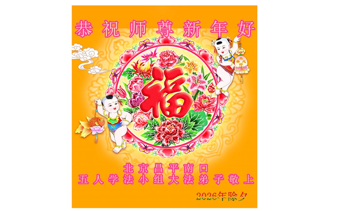 在新的一年到來之際,我們北京學法小組全體大法弟子向慈悲偉大的師尊拜年!師父您好!您辛苦了!我們有信心和決心在新的一年遵照師尊的諄諄教導,修去人心,做好三件事,學法修心向內找,講真相,做個名副其實的大法弟子,跟師父回家。