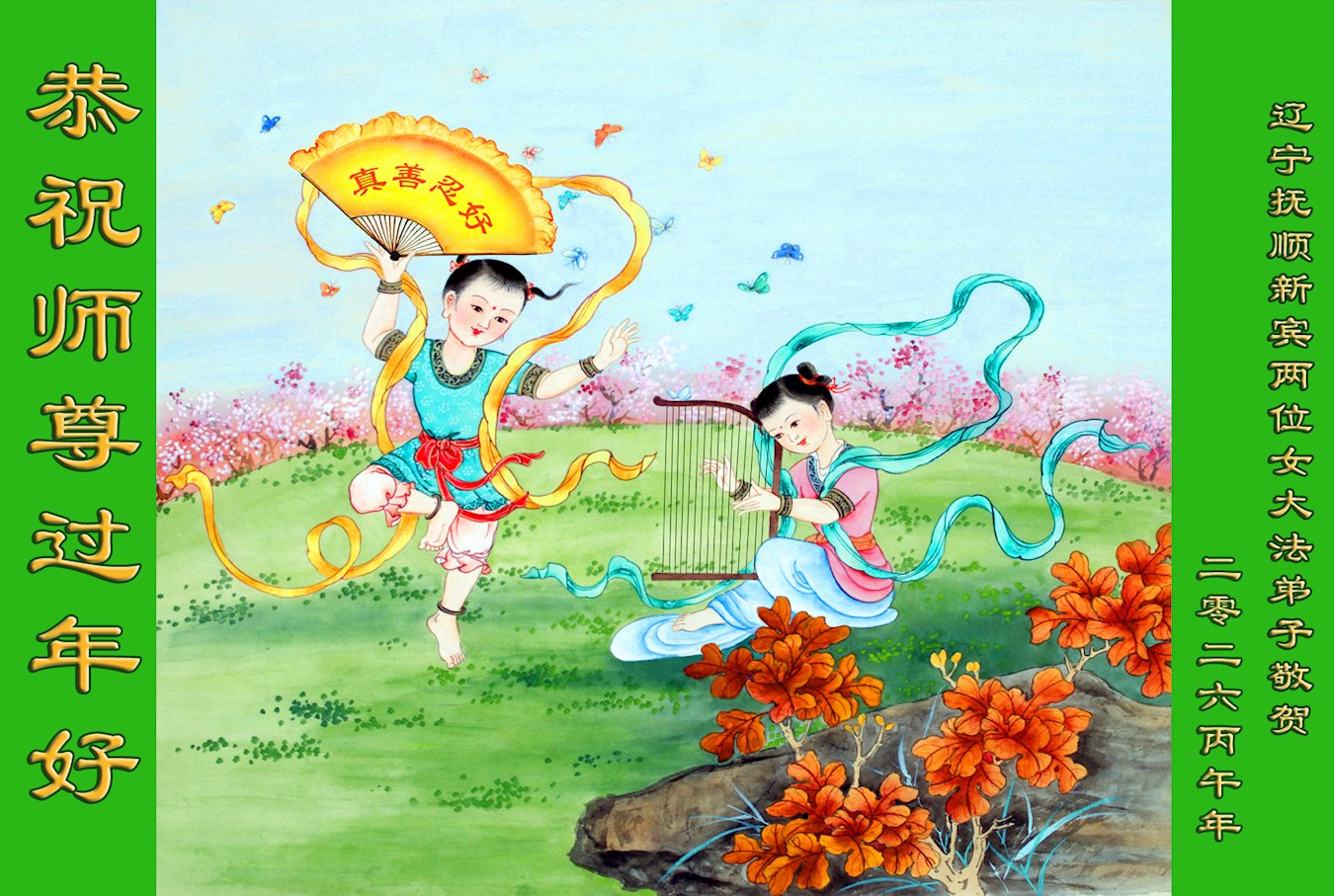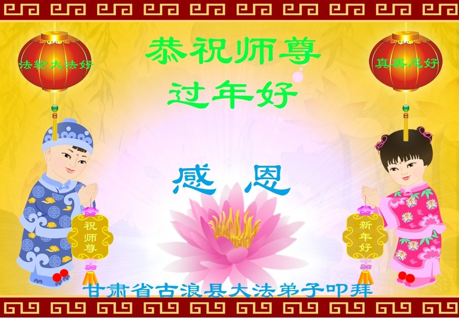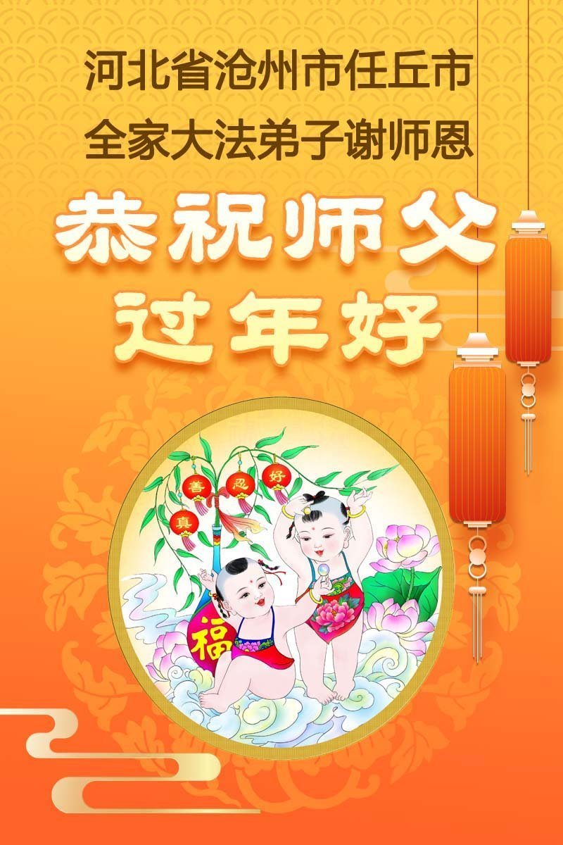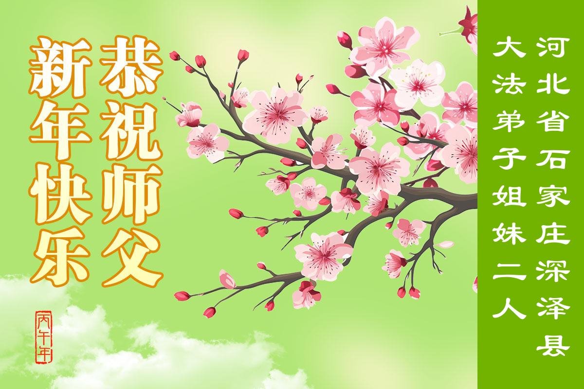 今天是臘月初一,快過大年了,我們姊妹倆在此給尊敬的師父拜年!感恩師父的慈悲普度,恭祝師父新年好!在新的一年裏,我們會聽師父的話,抓緊時間修好自己多救人。讓更多的眾生明白:法輪大法好,真善忍好!