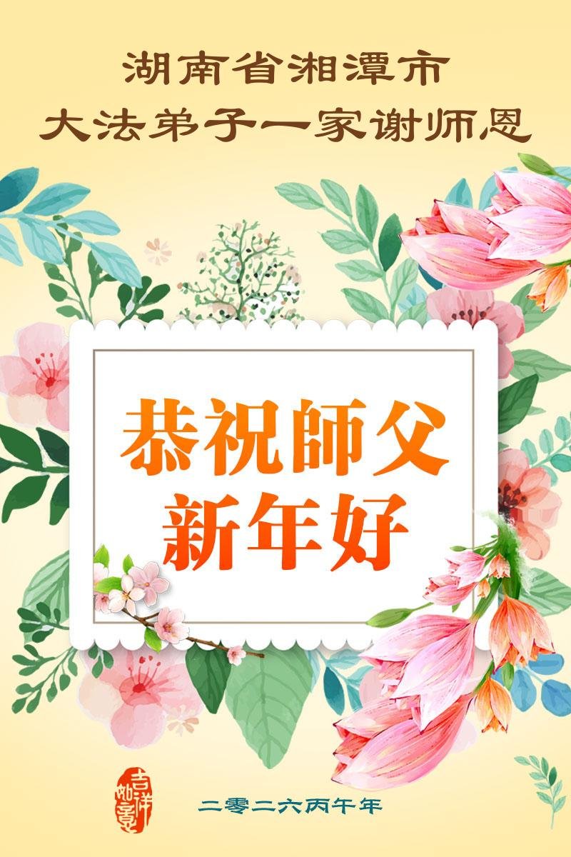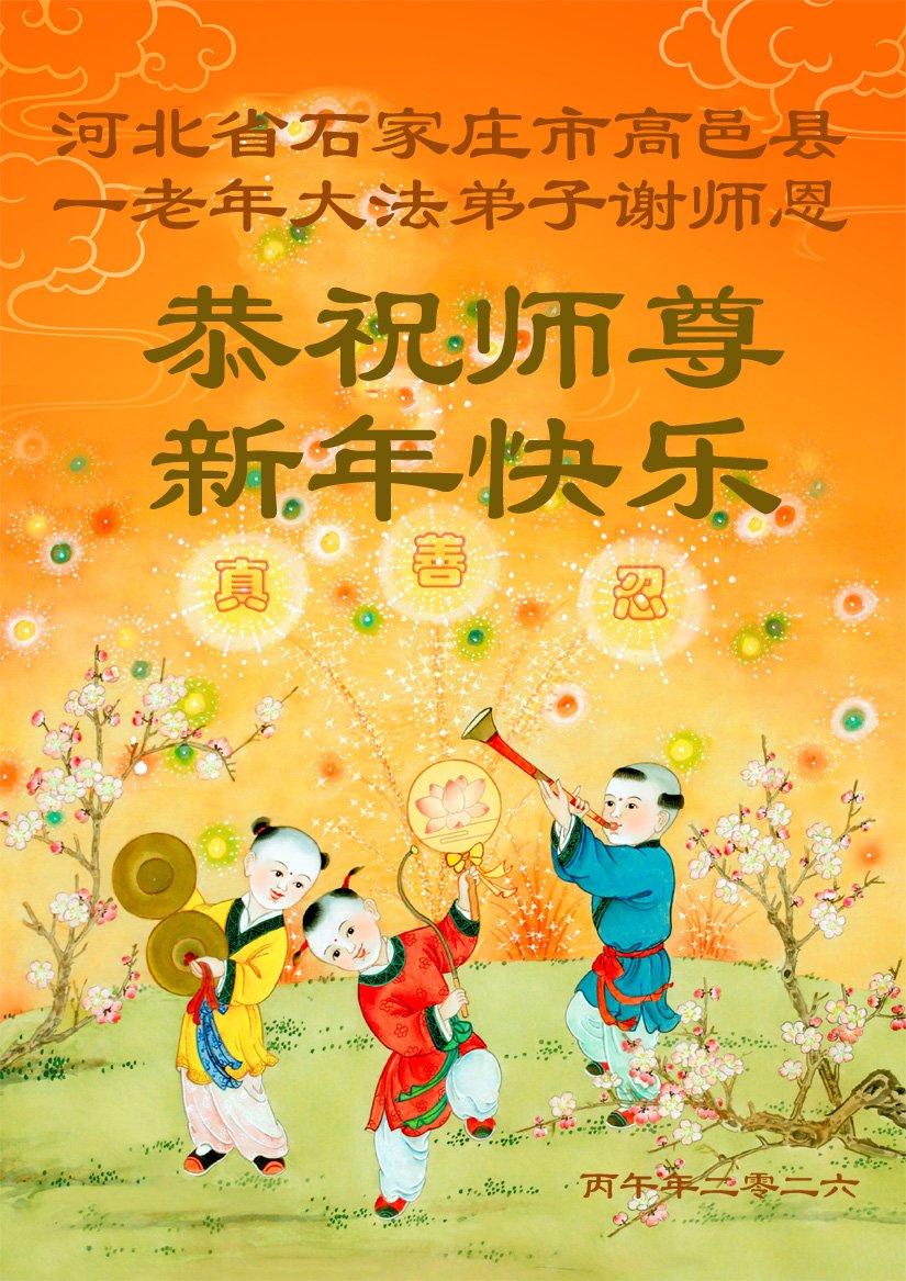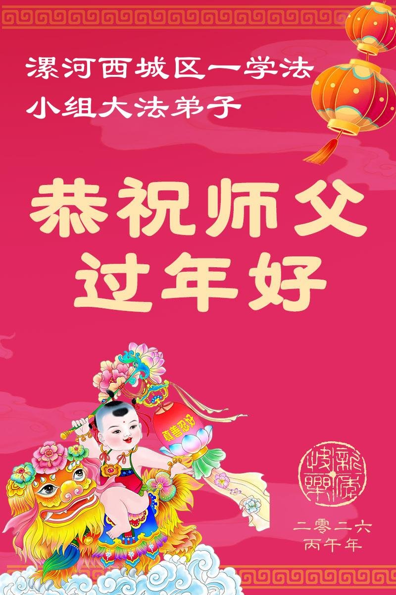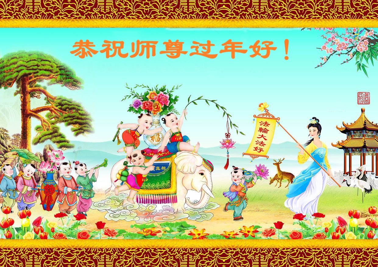 慈悲偉大的師父,弟子們恭賀師父新春快樂!在這助師救人的最後時刻,我們一定要抓緊時間學好法,抓緊時間講真相多救人、同時多發正念,完成自己的歷史使命,圓滿隨師還!