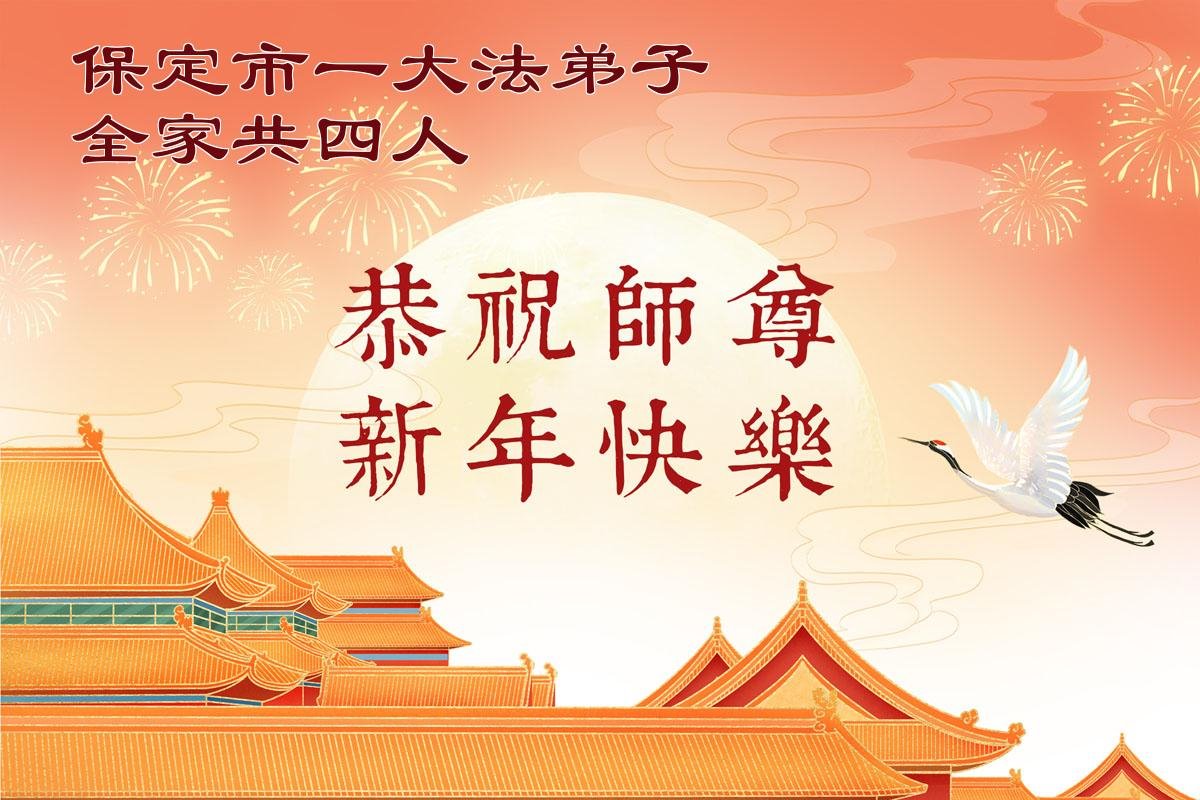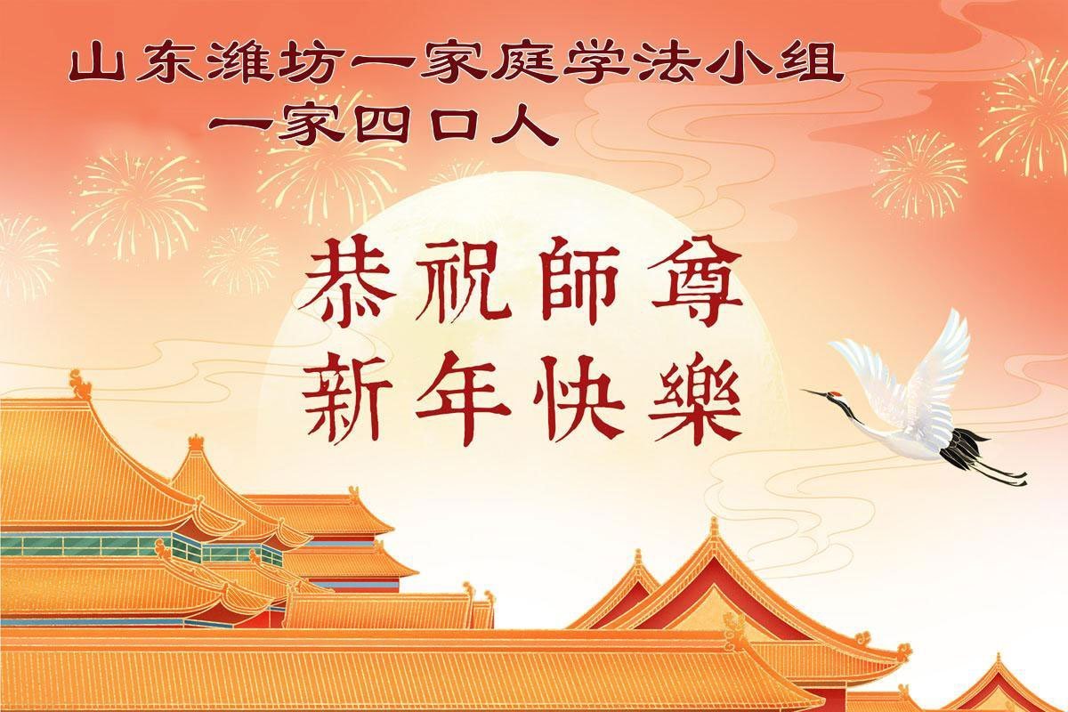 感謝師父對弟子們時時刻刻的看護!為了我們這些在外地的大法弟子不至於落下,安排機緣讓我們天南海北的大法弟子能夠相識,能在一起學法、修煉。我們都無比的感恩師父給我們這個機會,謝謝師父!弟子們也會把握好這個機會,精進實修,走好師父給安排的路。師父為弟子們的修煉操盡了心,費盡了心血,一步一步的引領著我們走好修煉的路。沒有語言能表達弟子對師父的感恩!師父您辛苦了!謝謝師父!新年到來的時刻,我們在外地的學法小組四人給師父拜年了!