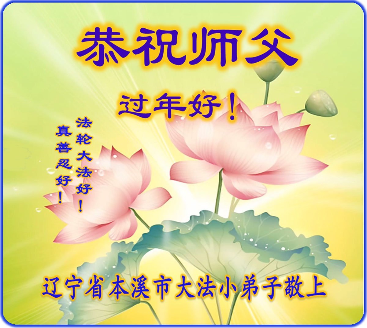 尊敬的師父,新年好!您辛苦了!多年來,您為弟子與眾生付出承受的太多太多了,弟子無限感恩與珍惜!得救的眾生無不歡欣鼓舞,感恩師父的慈悲救度!弟子會更加努力做好三件事,走好今後的路。願師父多一份欣慰,少一份操勞。