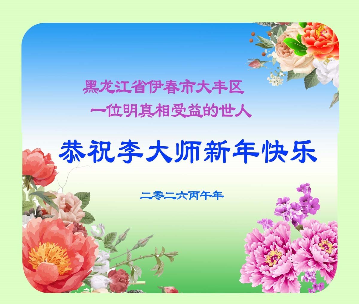 【明慧網二零二六年二月十九日】(明慧網通訊員綜合報導)二零二六丙午年到來之際,中國大陸各省市明真相的民眾紛紛表達對法輪大法的敬仰、對李洪志大師的感恩。