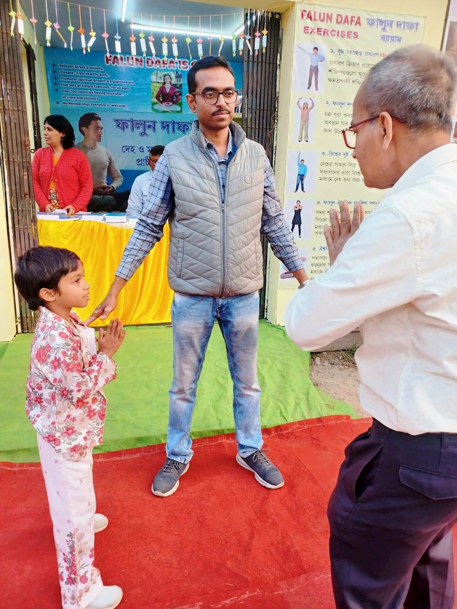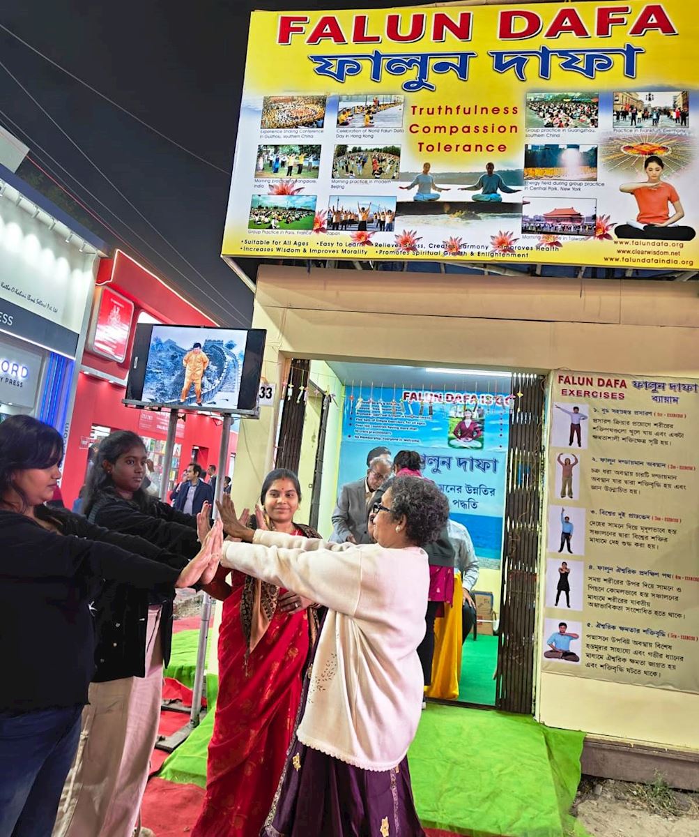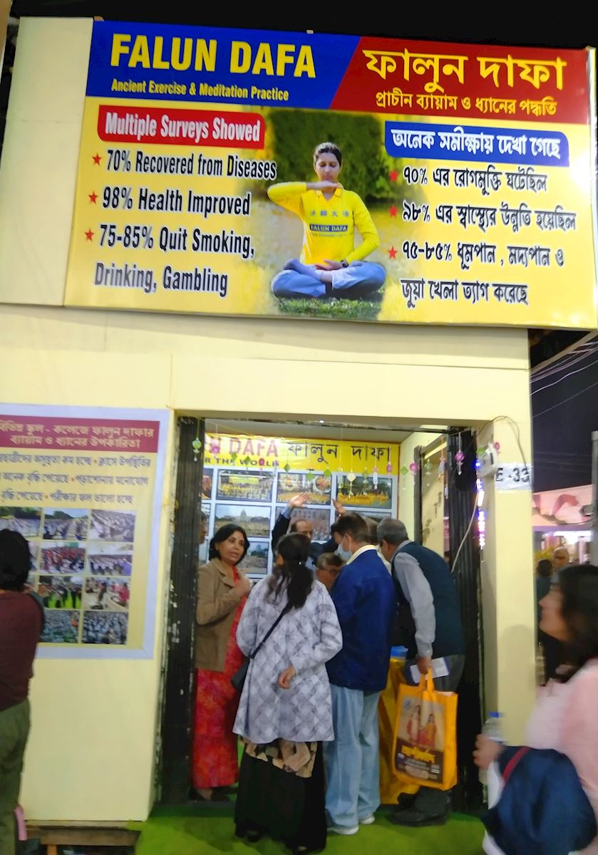加爾各答法輪功學員比特醫生(Dr. Bit)表示,自二零一五年以來,學員們每年都參加這一重要的社區活動。第一年,展位上只有英文版的法輪大法書籍。「第一年,人們就要求購買孟加拉語版本的《法輪功》和《轉法輪》。」比特醫生說,「我們在二零一六年的書展上就準備好了孟加拉語版本。」整個書展期間共售出二百七十多本法輪大法書。