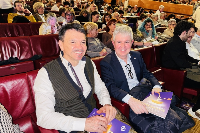 圖16:三月三日下午,奎薩克市議員奧利維耶﹒萬康和太太在法國蒙彼利埃觀看了神韻演出。(新唐人電視台)