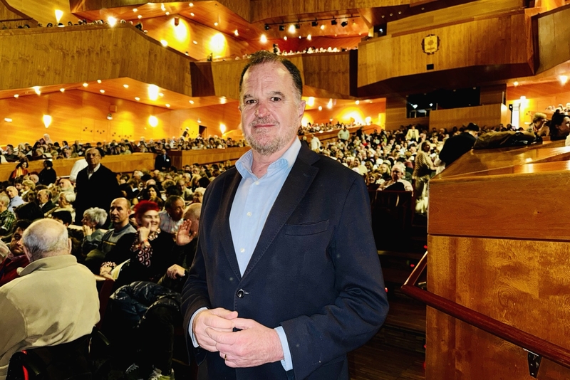 圖11:三月三日晚,西班牙巴斯克大區議員米克爾﹒阿魯阿瓦雷納﹒阿斯皮塔爾特在畢爾巴鄂觀看神韻演出。(新唐人電視台)