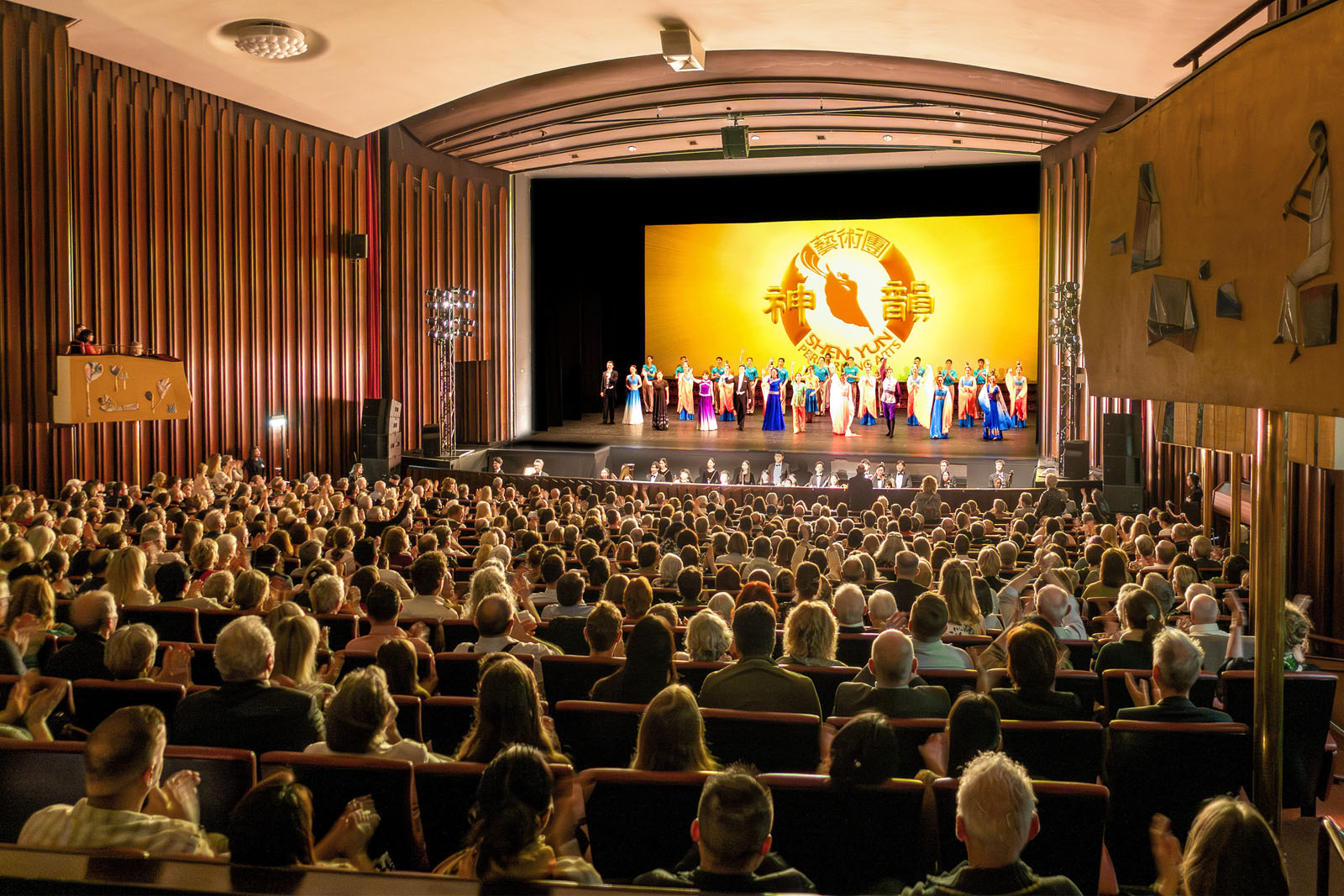 圖3:二零二六年三月七日下午和晚上,神韻環球藝術團在奧地利薩爾茲堡大節慶劇院(Großes Festspielhaus)的演出場場爆滿。圖為下午場謝幕照。(大紀元)
