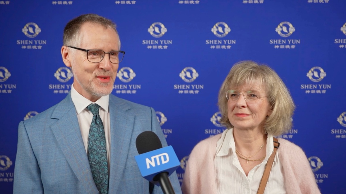 圖18:三月七日晚,德國杜塞爾多夫大學教授馬蒂亞斯﹒卡薩克和太太觀看了神韻演出。(新唐人電視台)