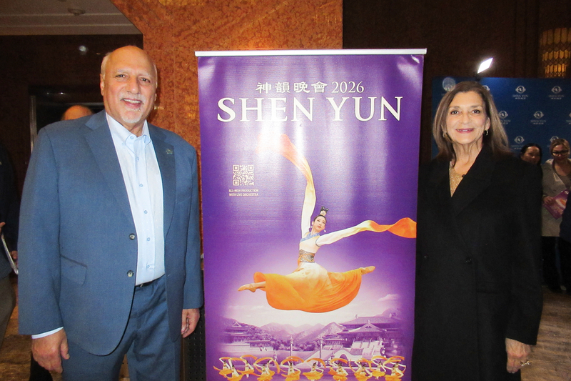 圖23:三月五日晚,內華達州副州長斯塔夫羅斯﹒安東尼與太太在拉斯維加斯觀看了神韻演出。(大紀元)