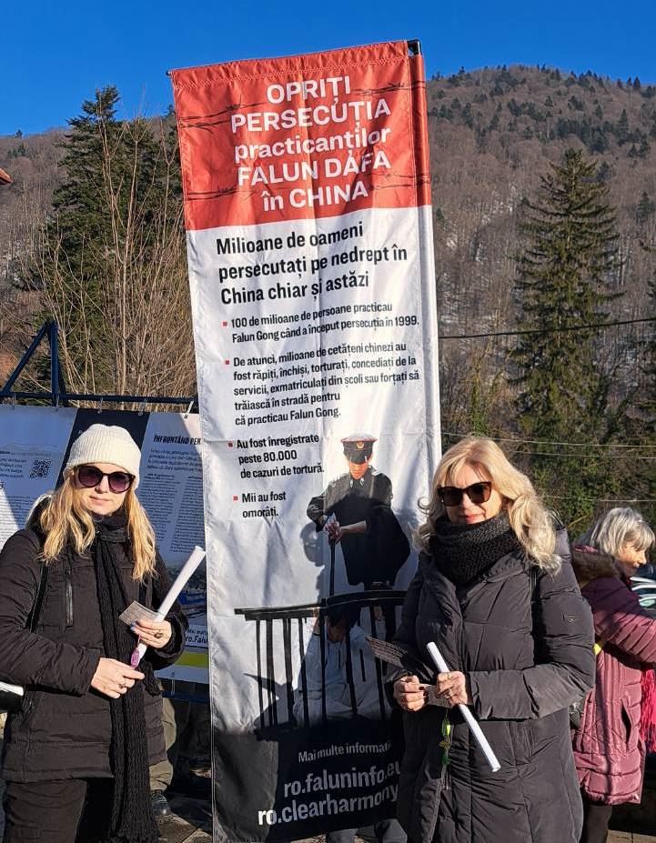 來自羅馬尼亞東部城市福克沙尼(Focșani)的克勞迪婭(Claudia)和伊琳娜(Irina)在請願書上簽了名。她們說:「我們希望幫助制止中共對這些好人的迫害。」