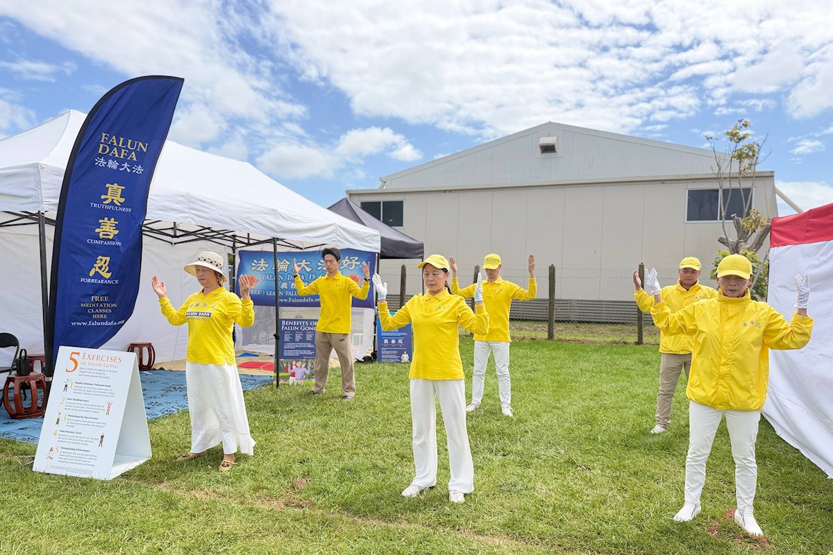![]() 圖1:二零二六年三月十四日至十五日,新西蘭法輪功學員參加了奧克蘭第103屆庫姆展(Kumeu Show)。圖為法輪功學員的展位。 |