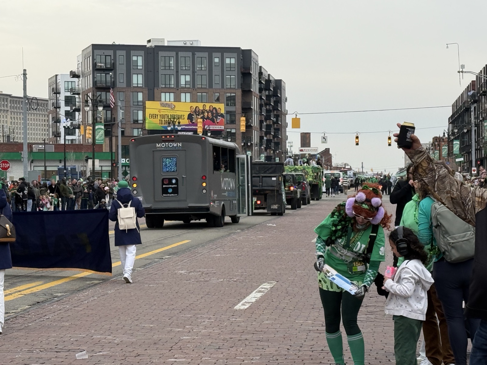 【明慧網二零二六年三月十九日】二零二六年三月十五日(週日),美國密西根州底特律市科克鎮(Corktown)舉行了第六十八屆聖派翠克節(St. Patrick』s Day)遊行。該遊行是底特律地區歷史悠久、規模盛大的年度慶典之一。遊行路線沿著底特律市中心街道行進,途經市區繁華地段,展現出這座汽車工業城市的都市風貌。當天的遊行活動吸引了上萬名民眾現場觀看,底特律街道兩旁早早聚集了大批觀眾,不少人身著綠色服飾、佩戴節日裝飾,共同慶祝聖派翠克節。