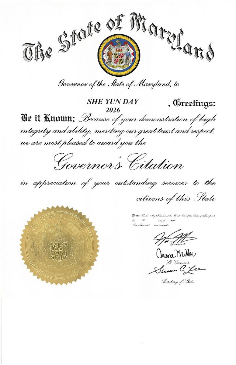 美國馬裏蘭州州長恭賀二零二六年「神韻日」