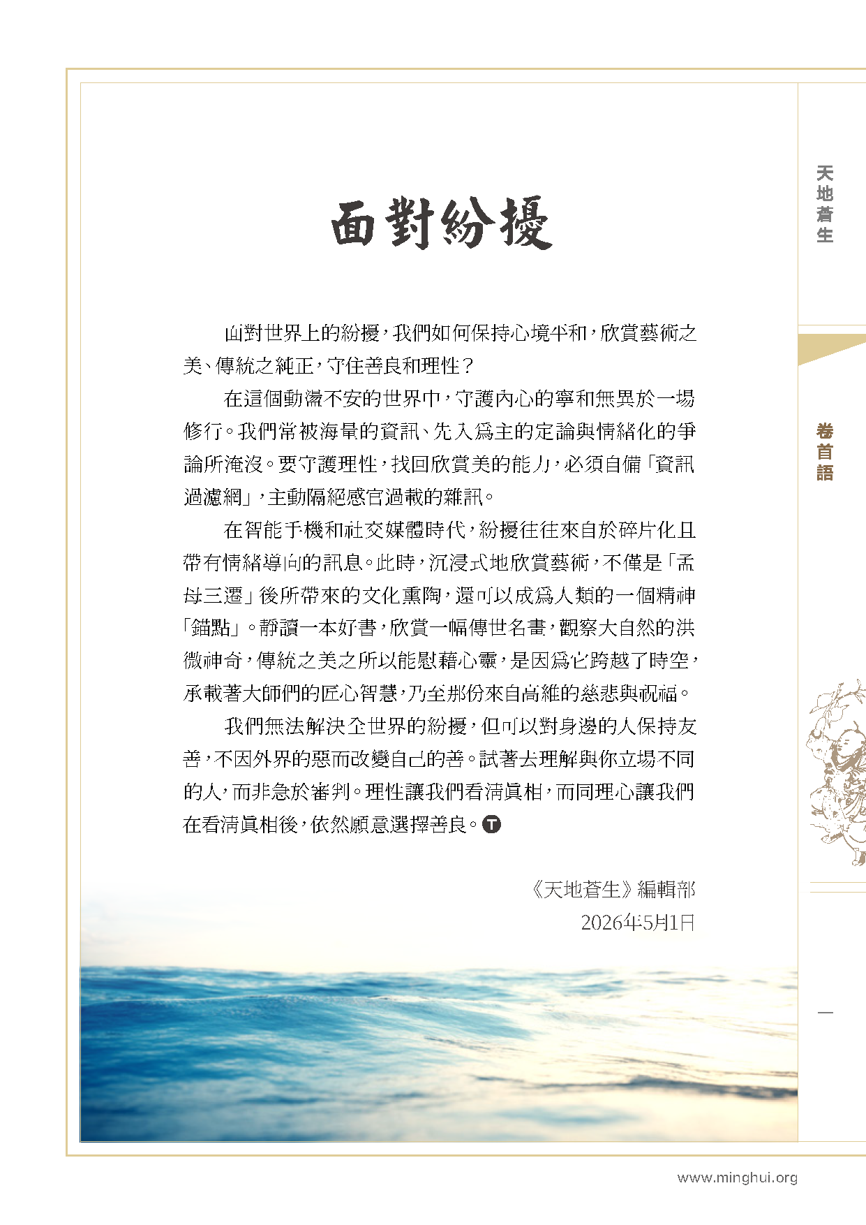 【明慧網二零二六年四月二十日】早就得知今年「五﹒一三」徵文開始了,也讀到幾篇同修關於投稿的交流文章,心裏想寫,但總感覺的沒甚麼可寫的了,單位忙忙碌碌的,自己三件事做的也不好,一時精進一時鬆懈。以前寫過幾次了,平平淡淡,自己都讀起來乾巴巴的,好像沒有甚麼特別吸引人的故事。這次就沒有打算動筆,這一晃就快到徵稿截止日了。