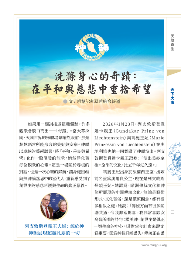 演出尚未揭幕,美加多地政要接連頒發褒獎與賀信:從州長設立「神韻日」,到議會通過 決議,支持與肯定不斷湧現。是甚麼力量,讓一場尚未上演的演出贏得如此尊重?或 許,正源於其深厚的文化底蘊與跨越人心的價值共鳴。