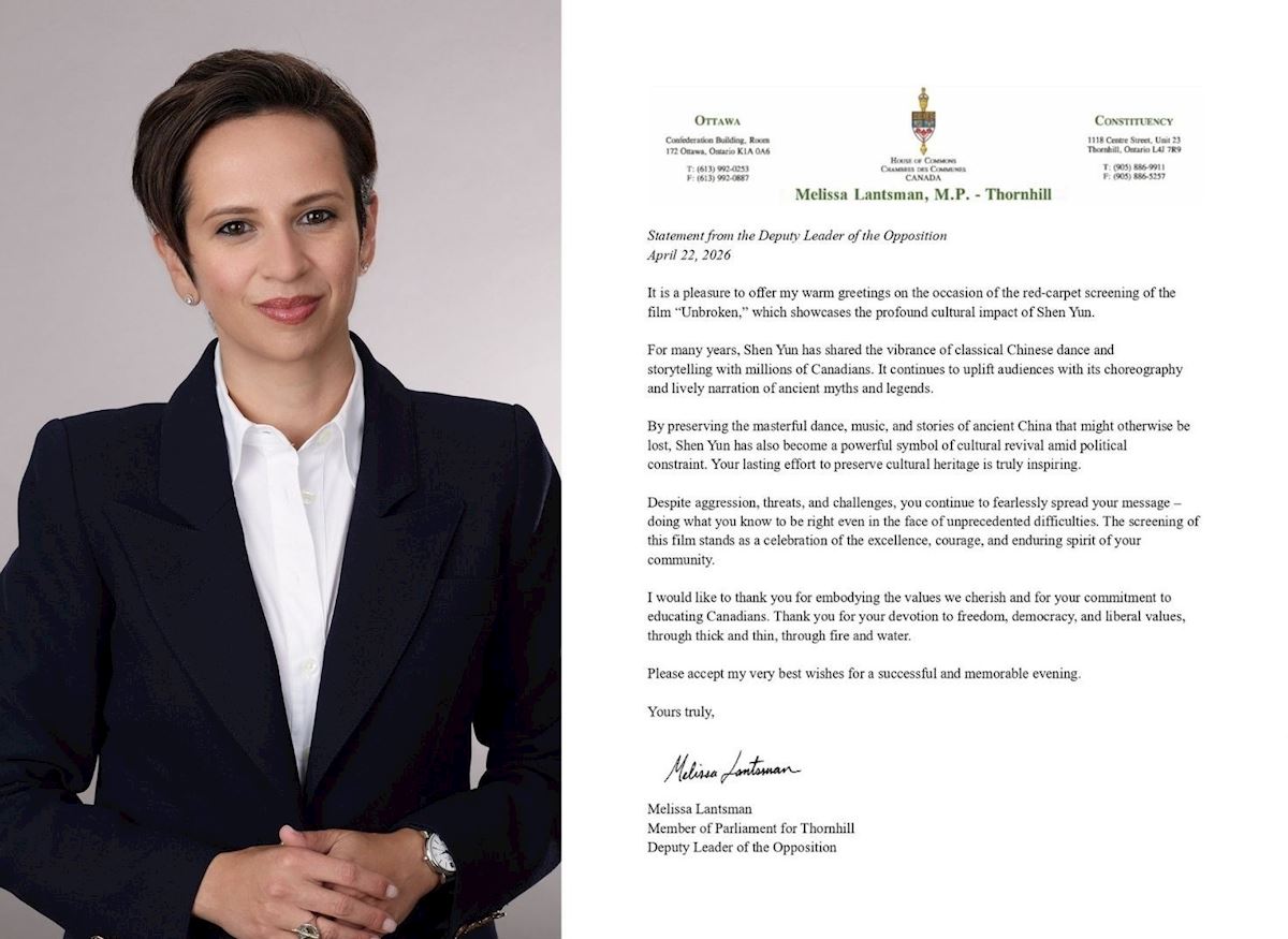 保守黨副黨領梅麗莎﹒蘭茨曼在支持信中表示:這部影片展現了神韻深遠的文化影響力。多年來,神韻將中國古典舞蹈和故事的魅力帶給了數百萬加拿大人。它以其精湛的舞蹈編排和生動的古代神話傳說講述,持續鼓舞著觀眾。