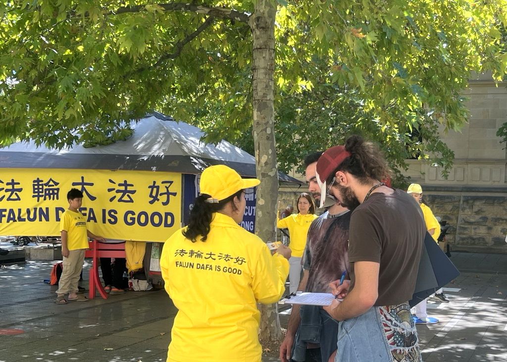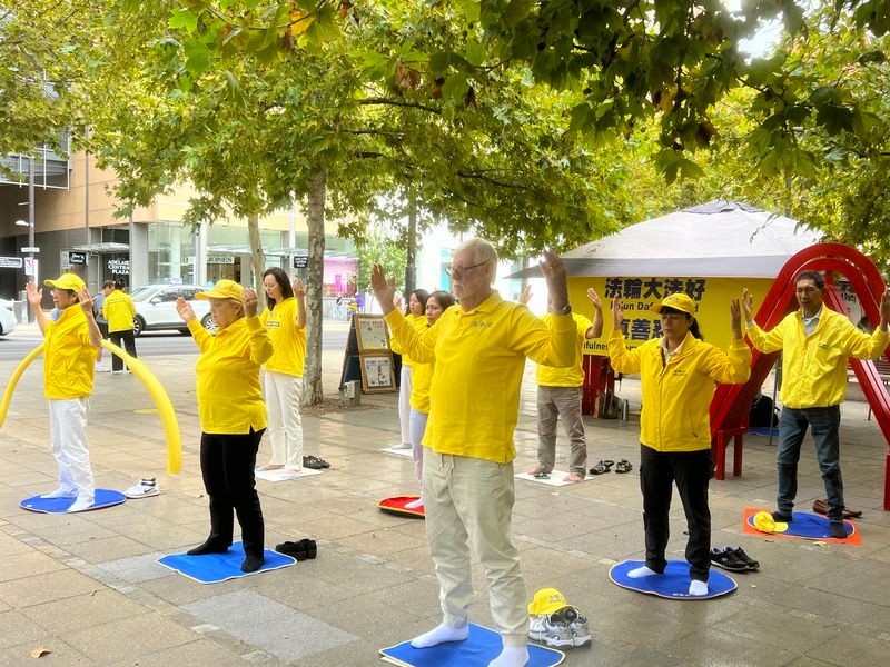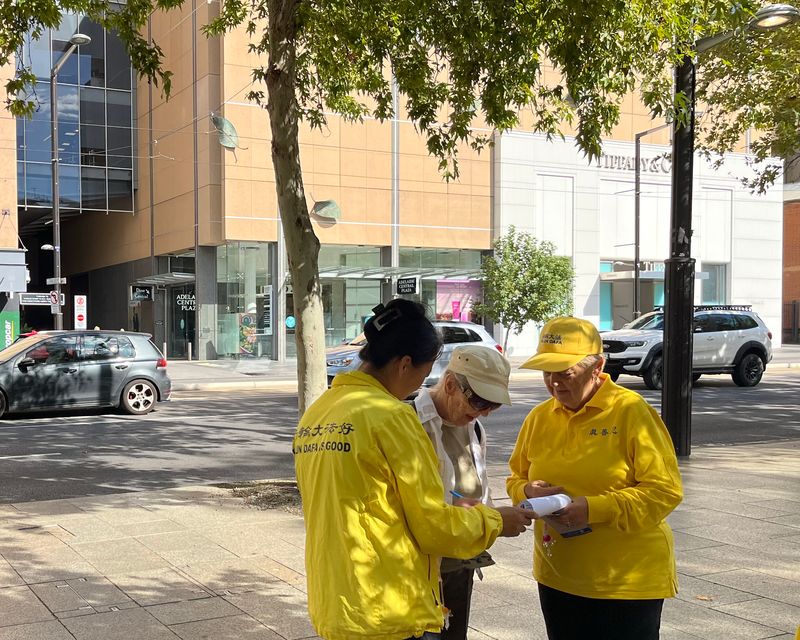 為此,南澳部份法輪功學員分別於二零二六年四月五日及十九日,在首府阿德雷德市中心北大街(North Tce)舉行了集體煉功和講真相活動,紀念「四﹒二五」法輪功學員和平上訪27週年,期望法輪功學員在中國能行駛信仰和人權自由的權力。