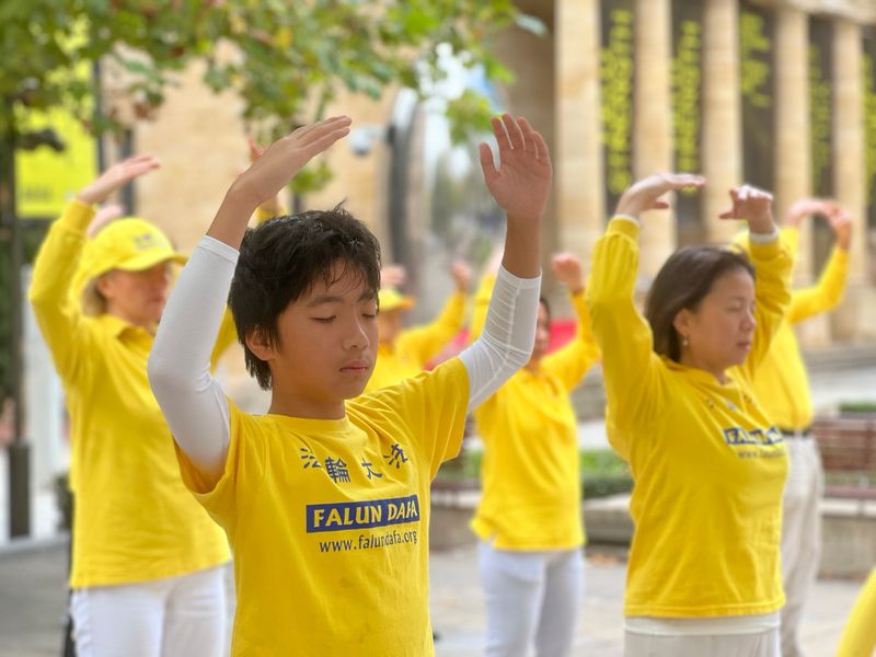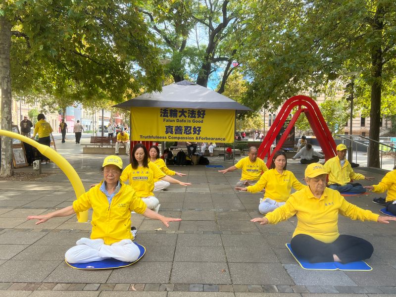 法輪功學員在戶外煉功,弘揚真、善、忍的美好,這個熟悉的場景讓澳洲人欣賞讚譽,並在台灣遍地可尋,卻在中國被摧毀了27年。