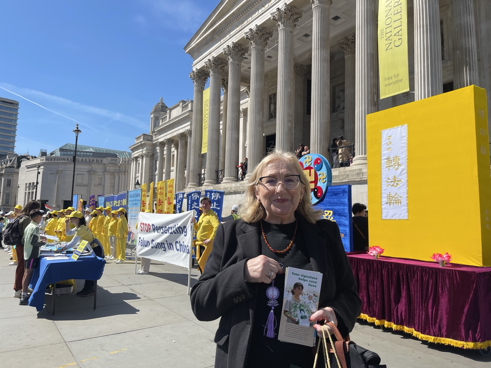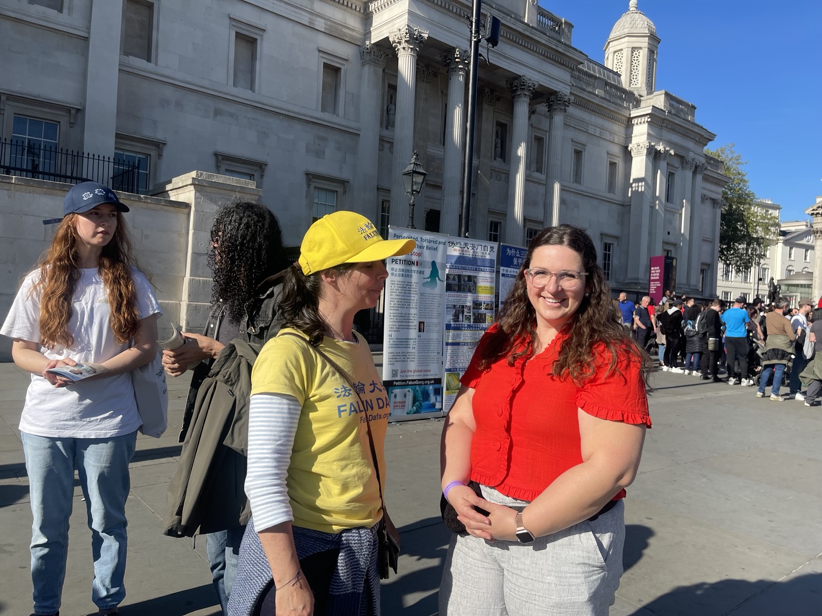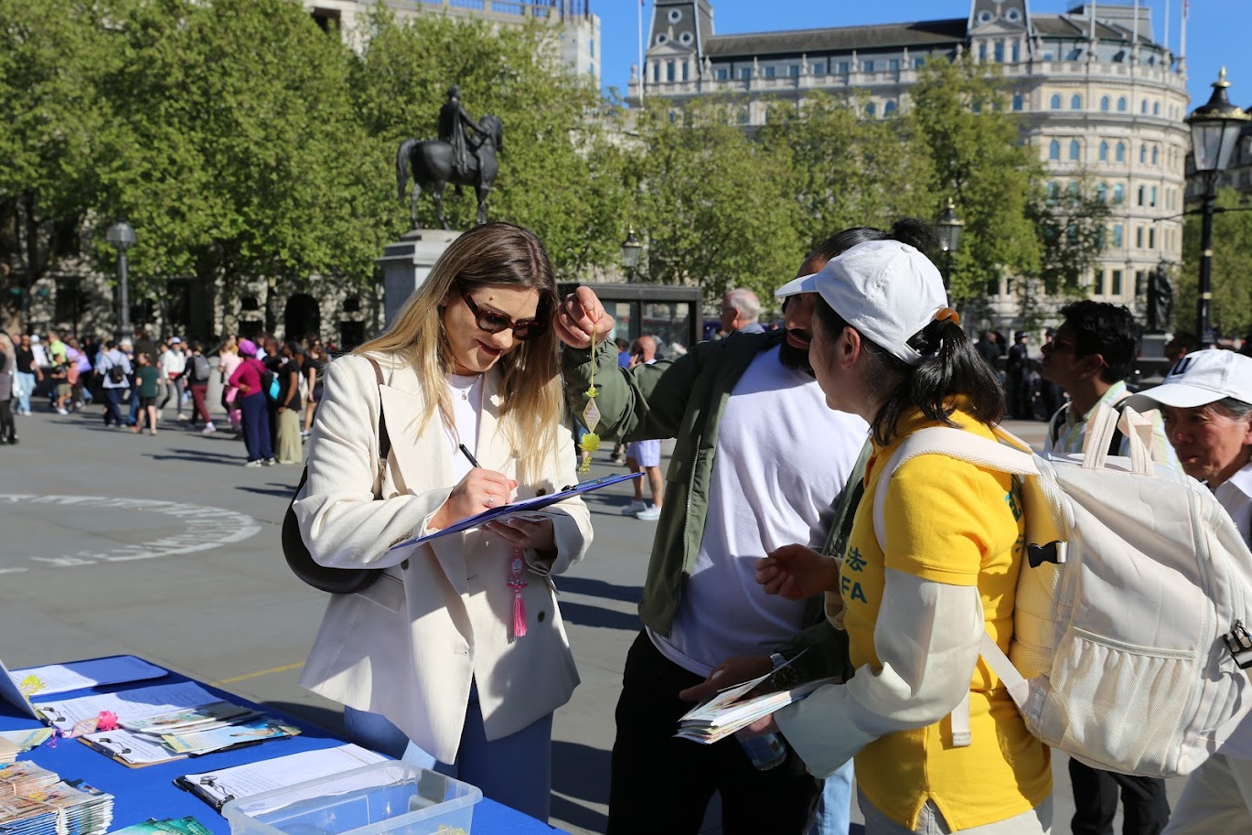 ![]() 圖9~11:二零二六年四月二十五日,法輪功學員在達特拉法加廣場 (Trafalgar Square) 的活動引來了多數倫敦市民和遊客前來了解迫害真相 |