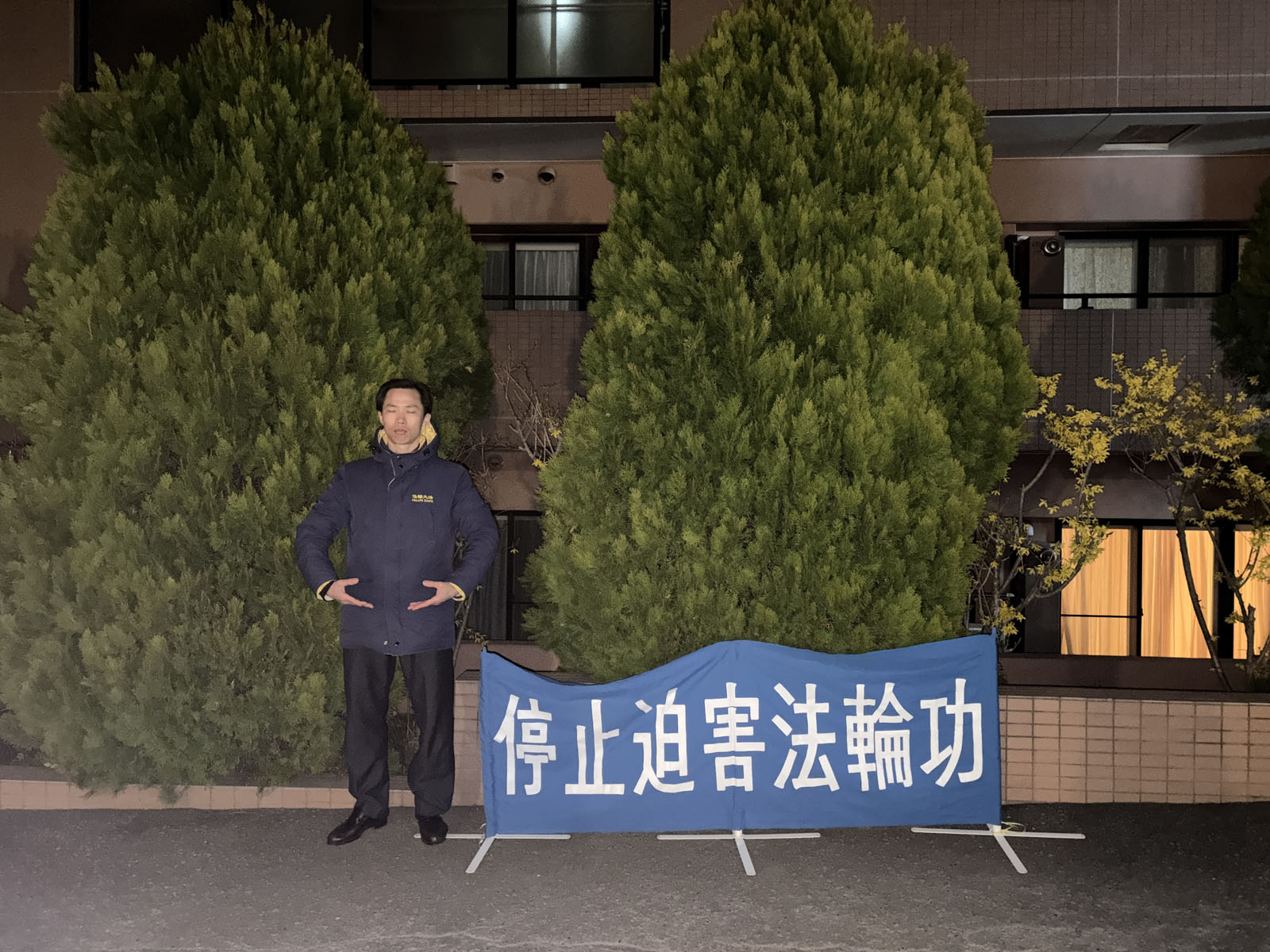 ![]() 圖4:法輪功學員孫先生在東京的中國駐日本大使館前和平請願 |