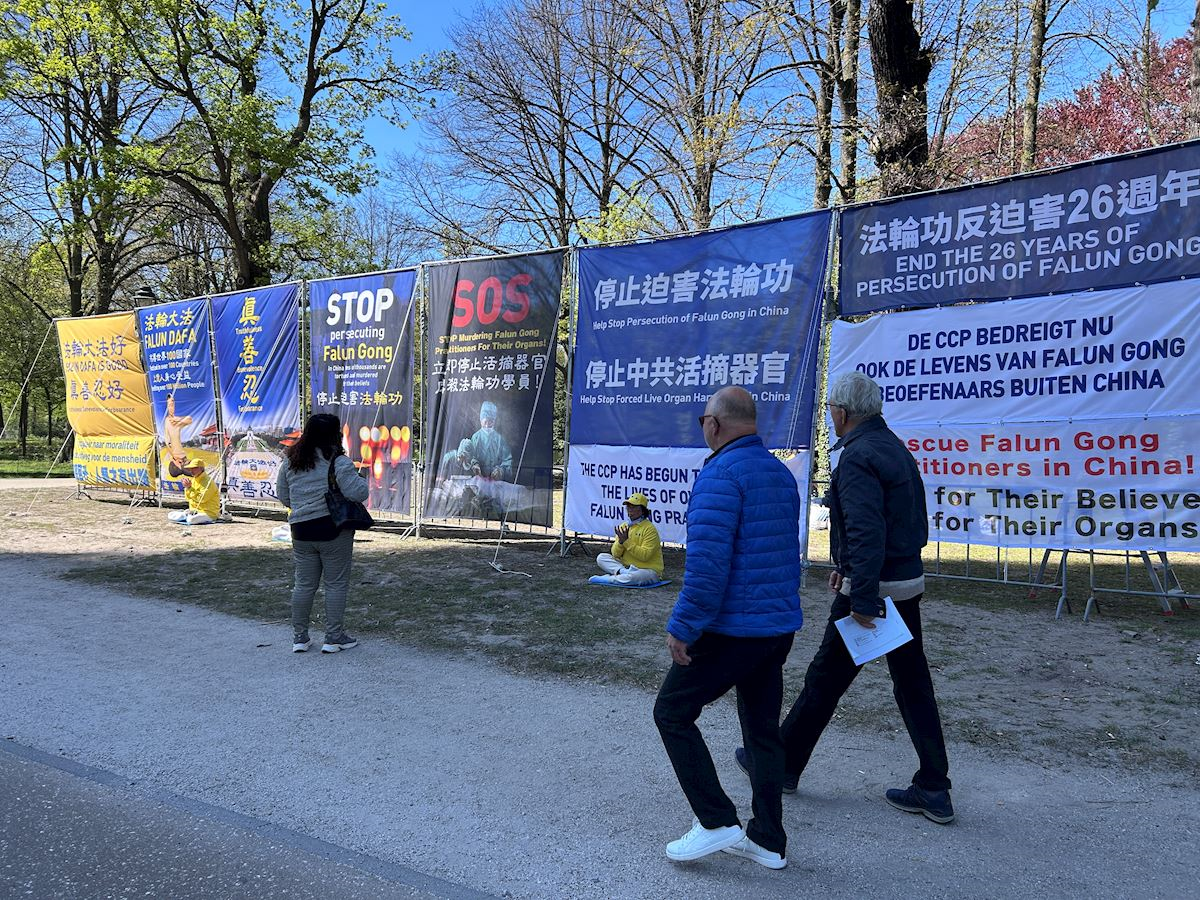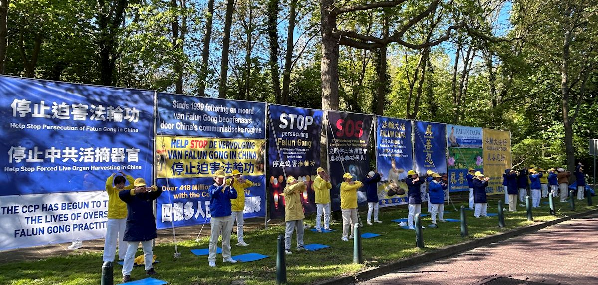 二零二六年四月二十三日,荷蘭部份法輪功學員在海牙中使館及荷蘭國會眾議院附近舉辦活動,紀念「四﹒二五」法輪功學員和平上訪27週年,呼籲停止迫害。